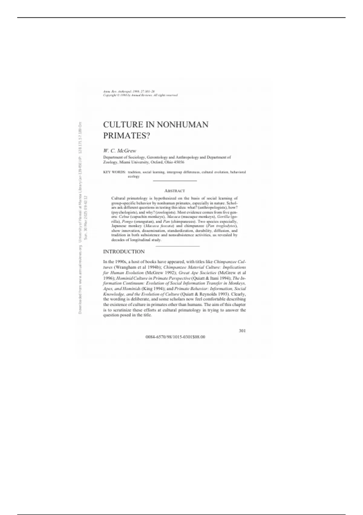 , CULTURE IN NONHUMAN PRIMATES? 303