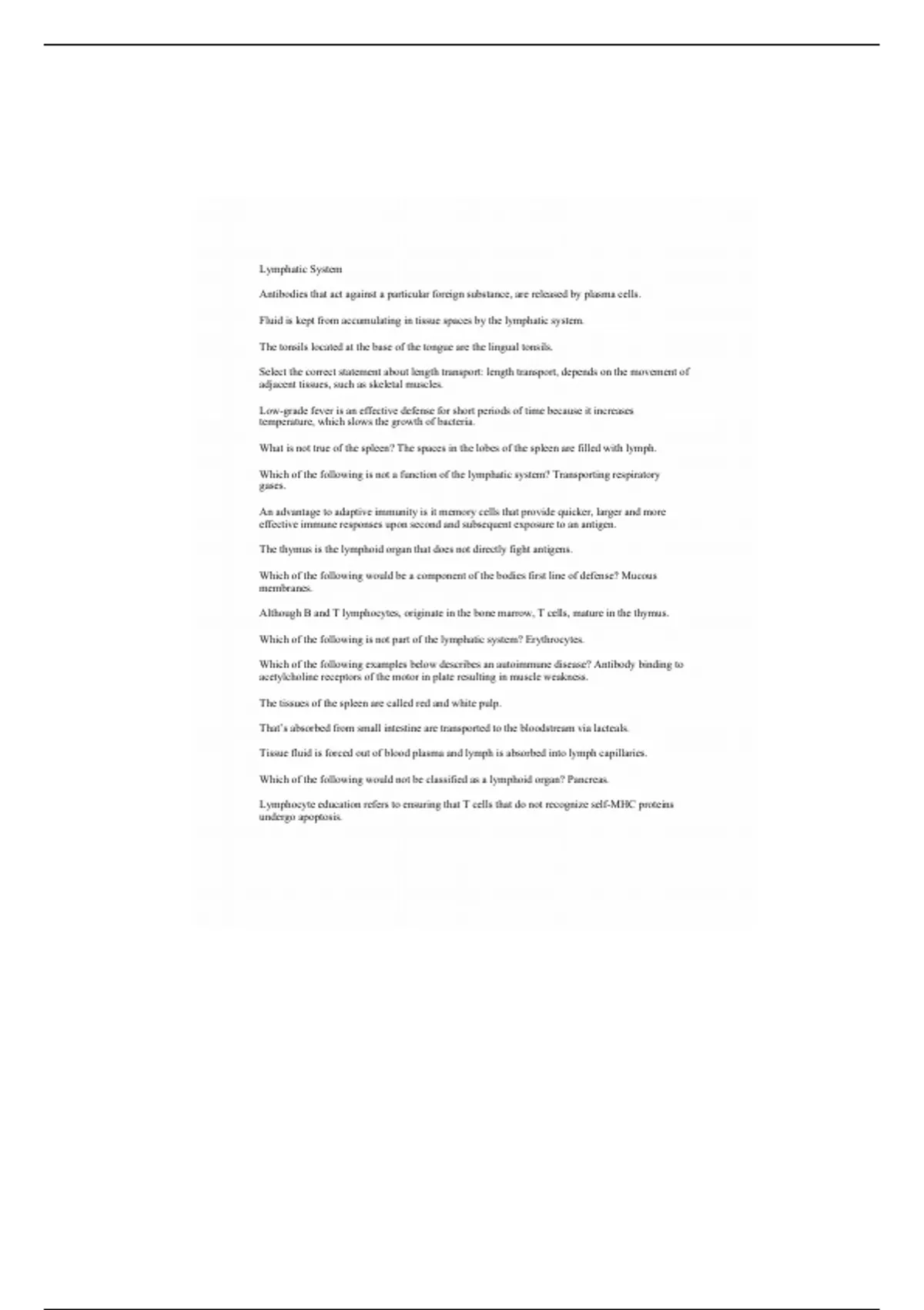 Summary BIOL 171 Lymphatic System Review