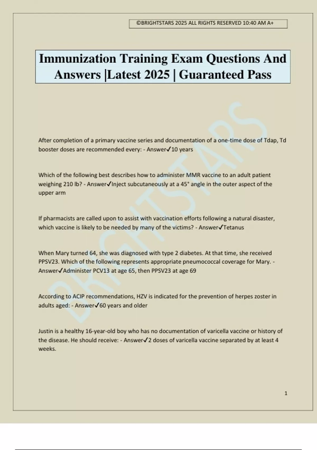 Immunization Training Exam Questions And