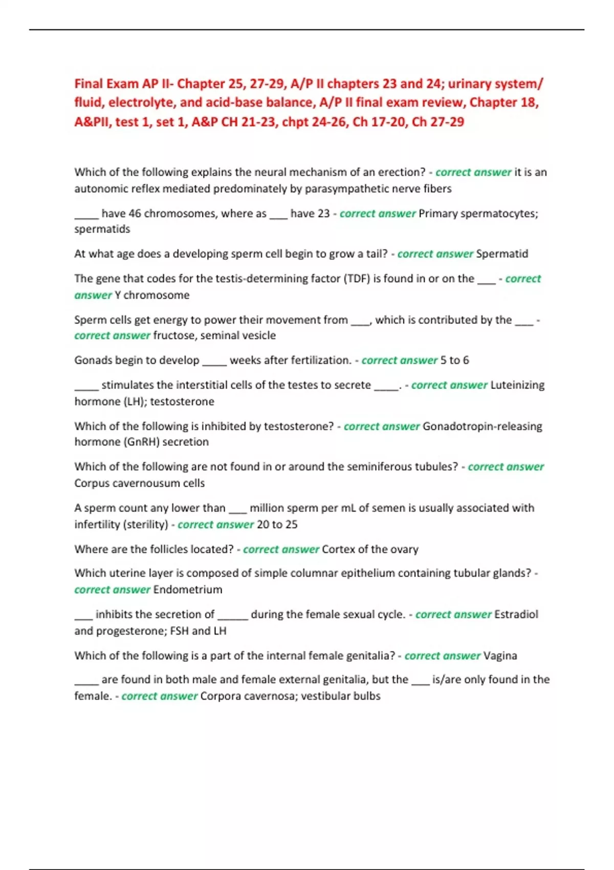 The ____ is the gonad and the __ is the gamete. - correct answer Testis; sperm