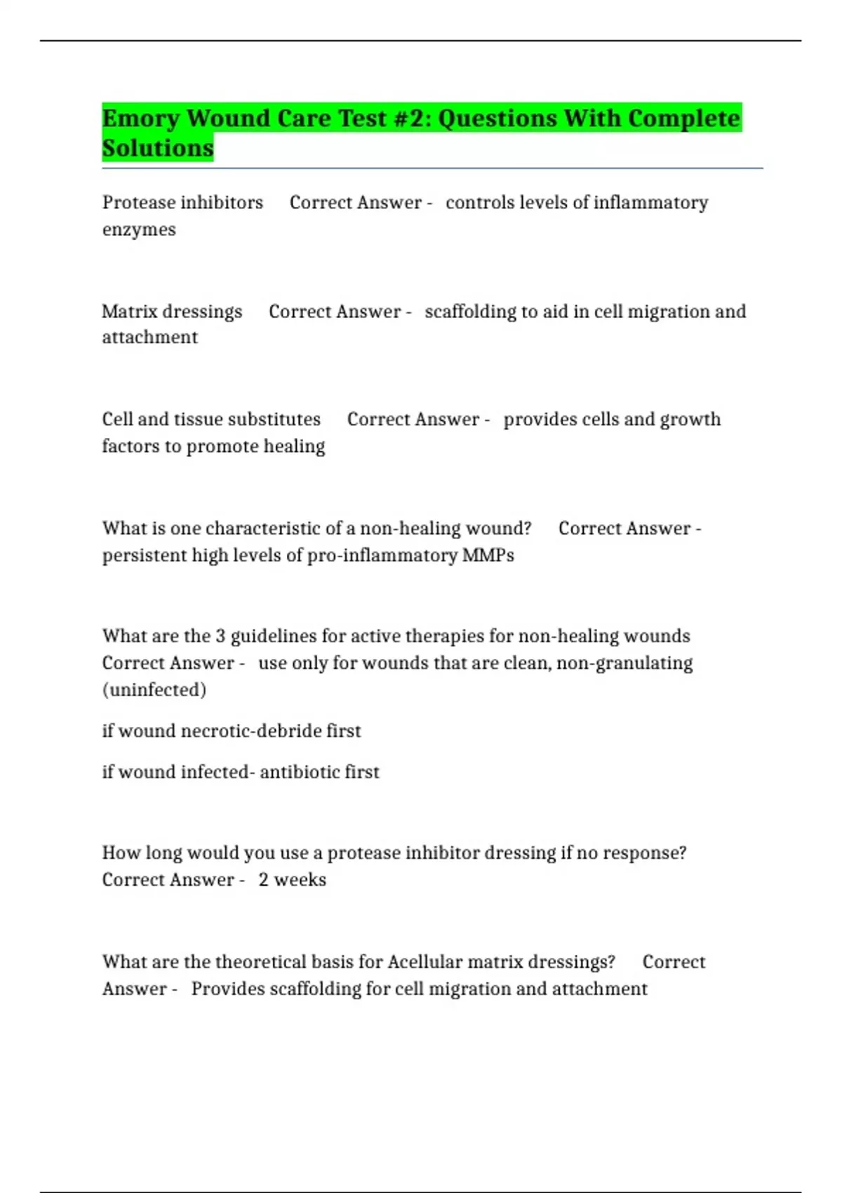 What is one characteristic of a non-healing wound? Correct Answer -