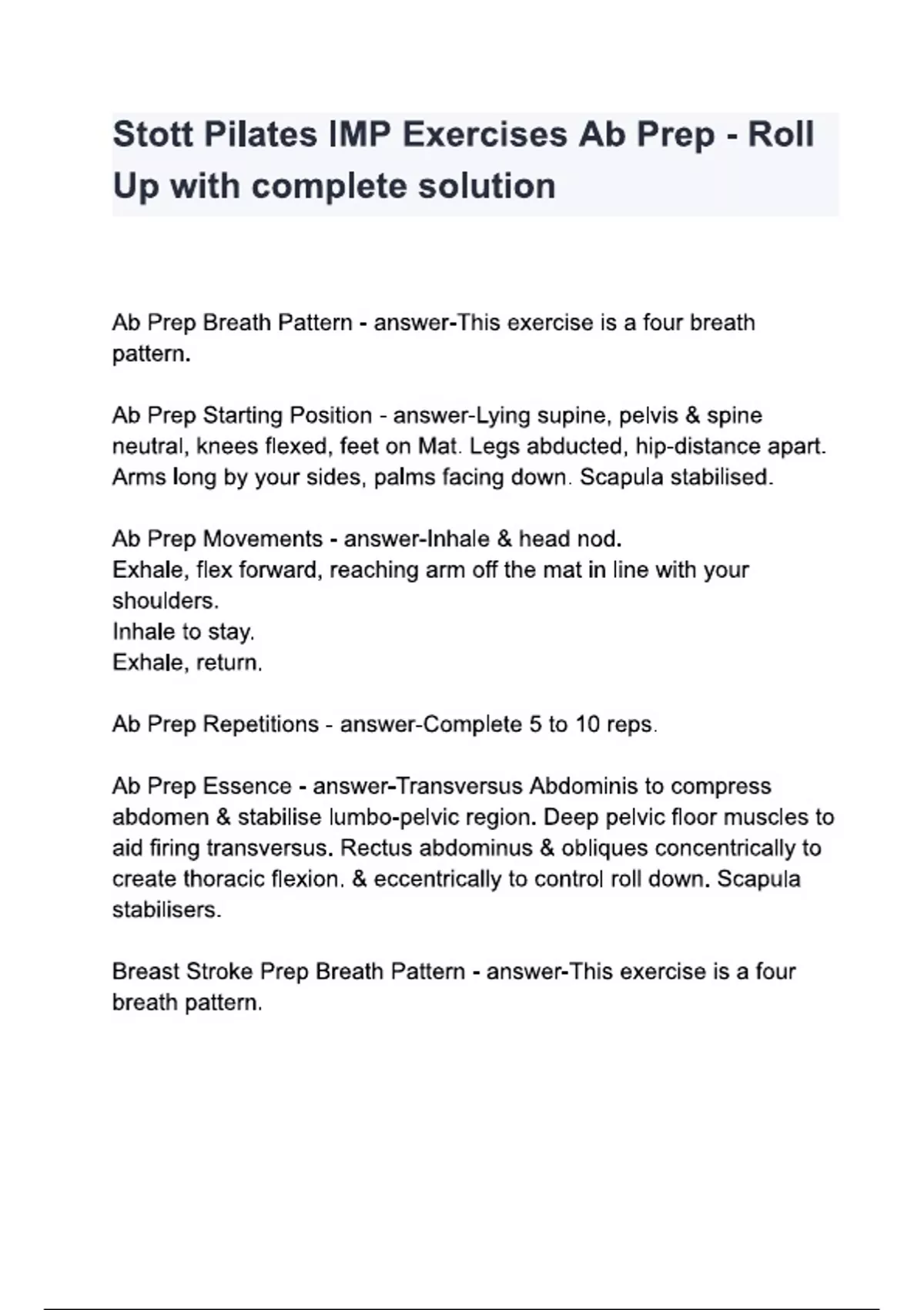 Stott Pilates IMP Exercises Ab Prep - Roll Up with complete solution