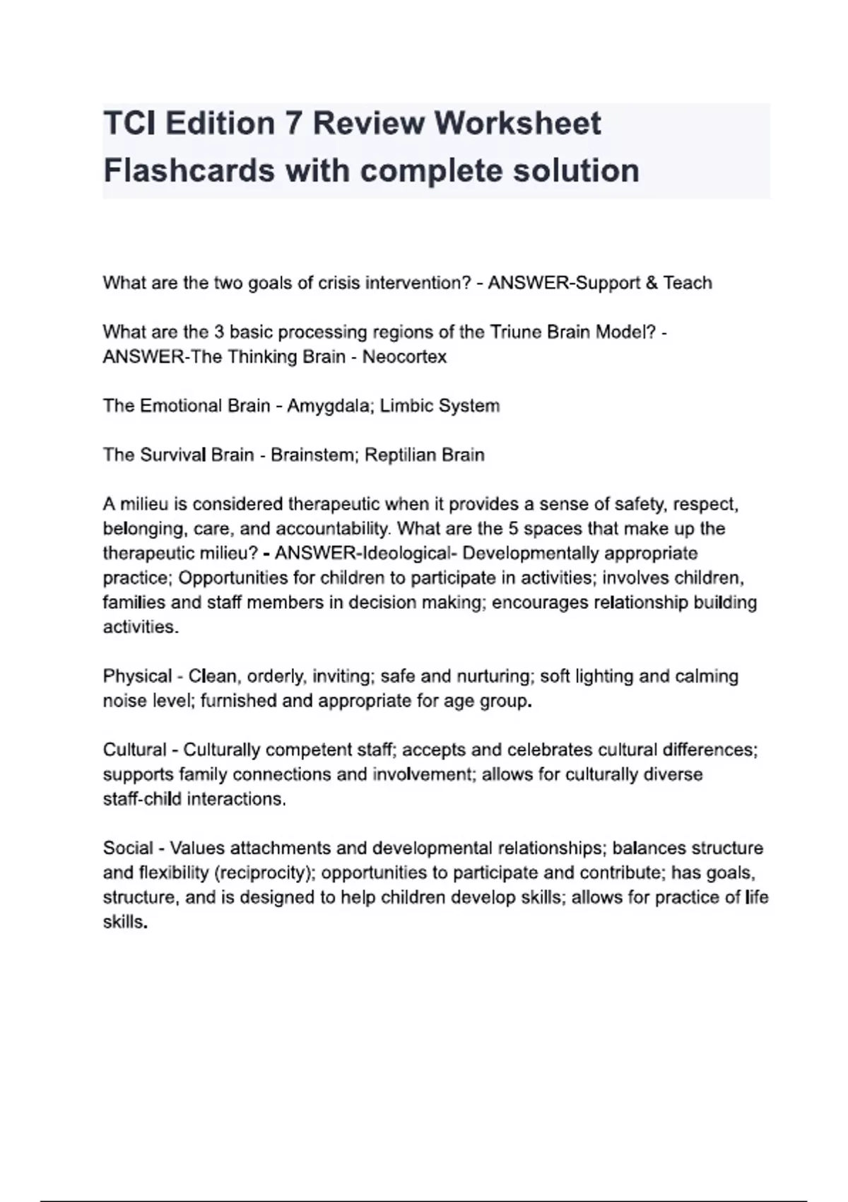 TCI Edition 7 Review Worksheet Flashcards with complete solution