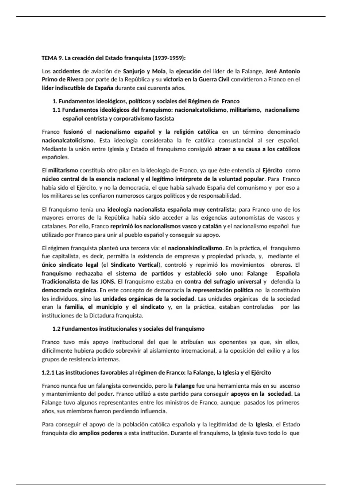 1.2 Fundamentos institucionales y sociales del franquismo