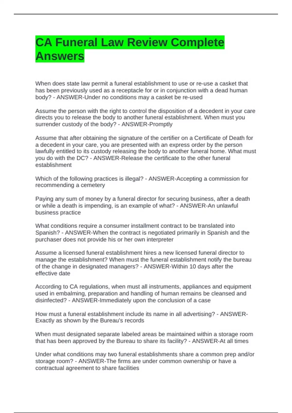 body? - ANSWER-Under no conditions may a casket be re-used
