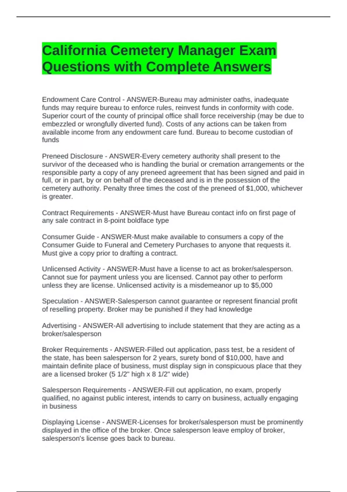 Cemetery Manager Designation - ANSWER-A cemetery manager shall be