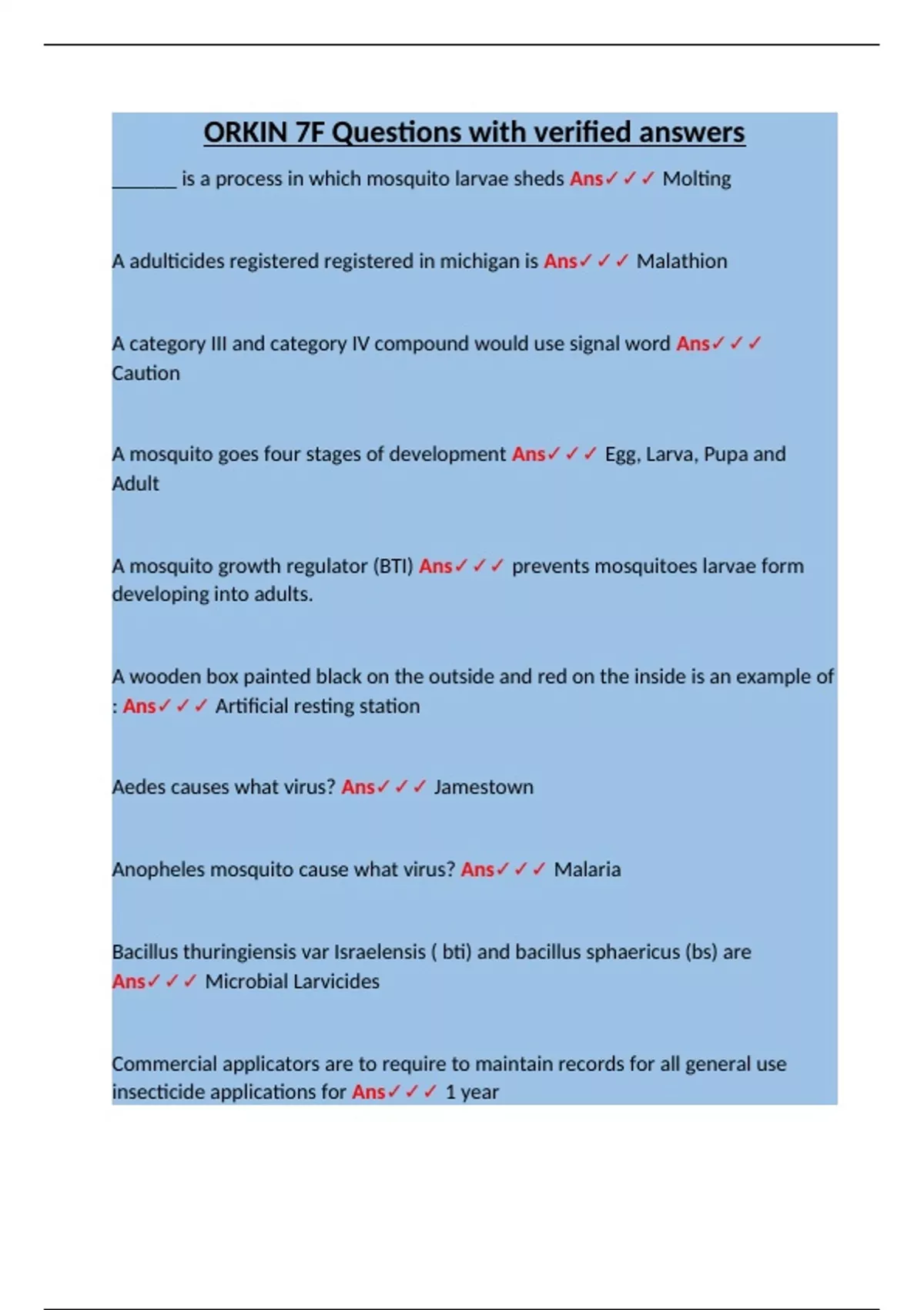 Ans✓✓✓ Microbial Larvicides
