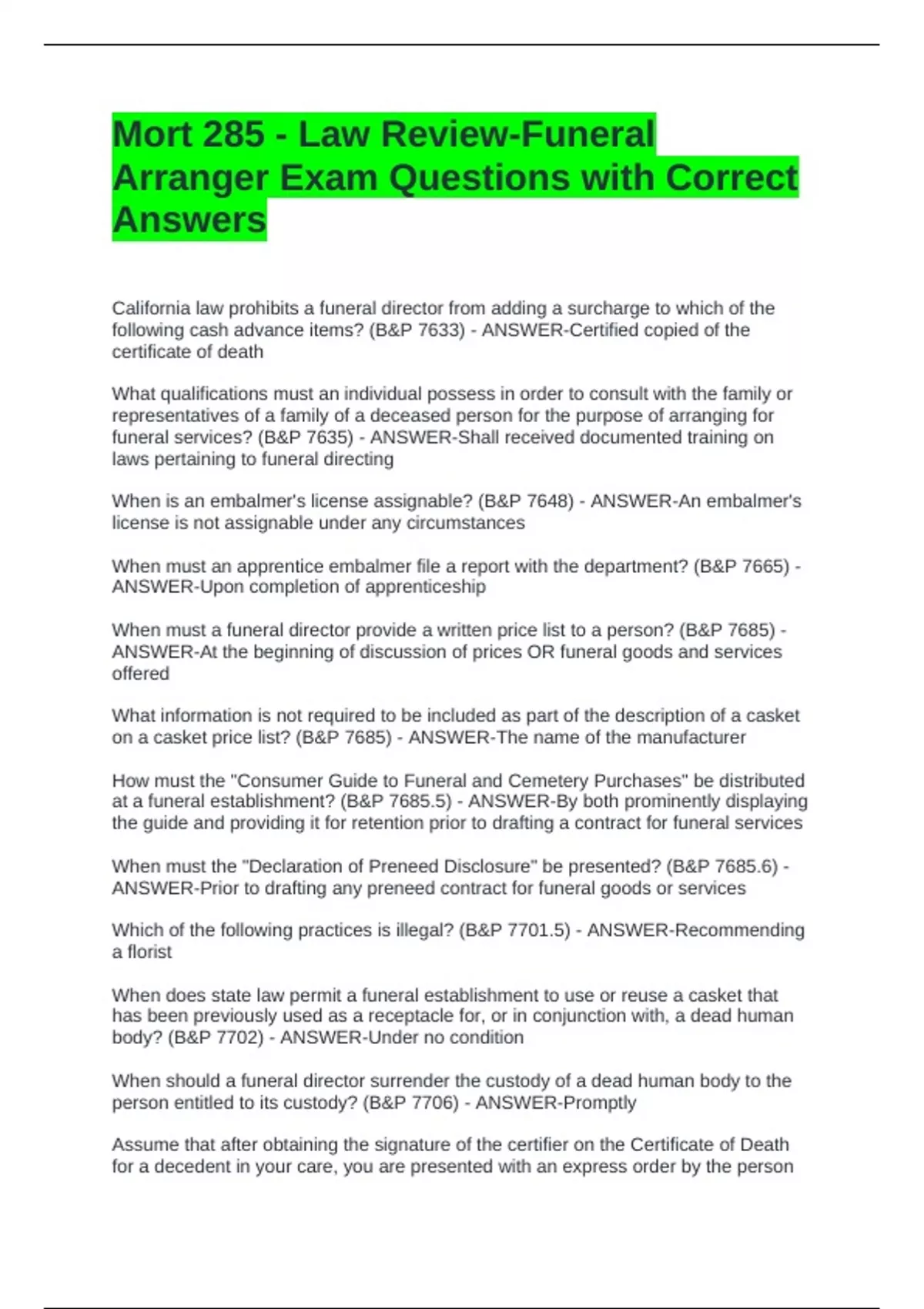 funeral services? (B&P 7635) - ANSWER-Shall received documented training on