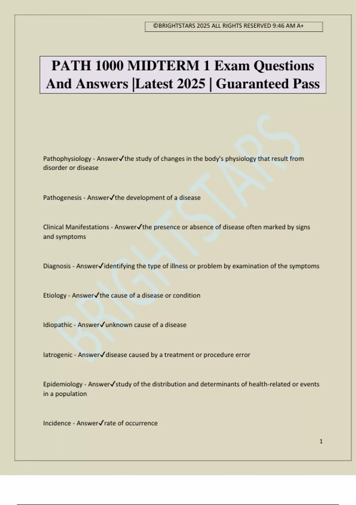 PATH 1000 MIDTERM 1 Exam Questions