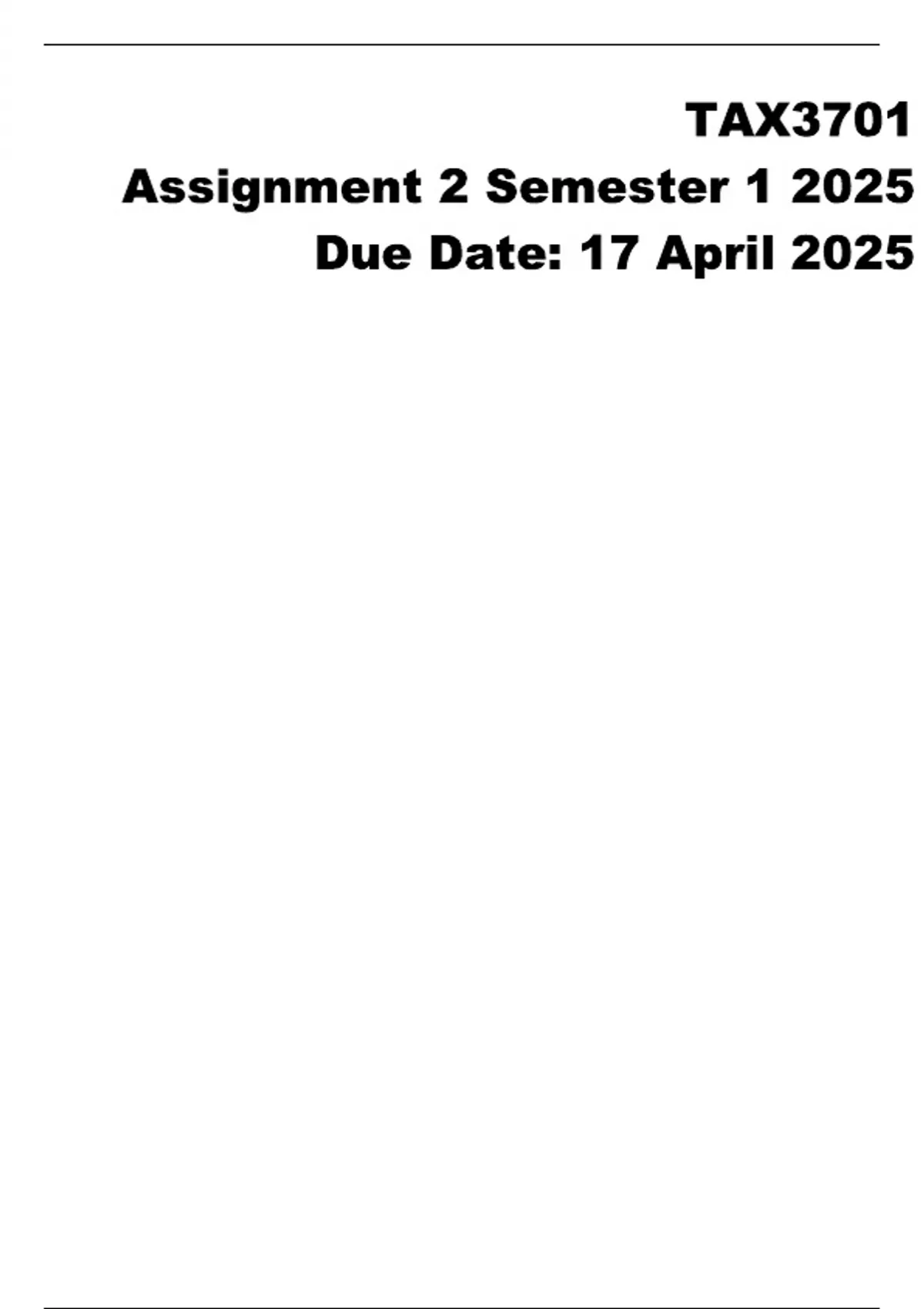 TAX3701 Assignment 2 (ACTUAL ANSWERS) Semester 1 2025 - DUE 17 April 2025, trusted solutions and explanations.