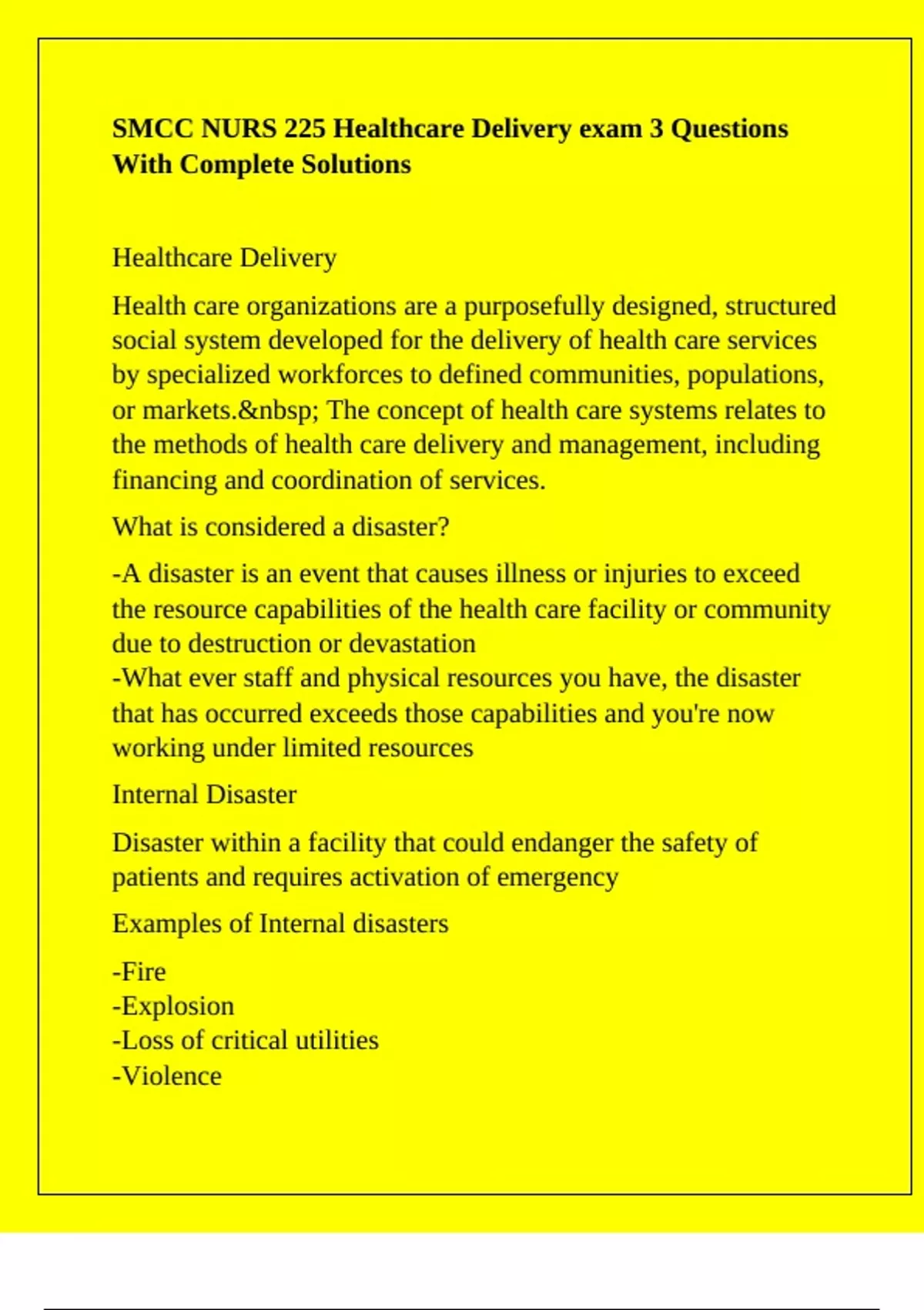 -If a disaster occurs and the facility is not prepared for it they