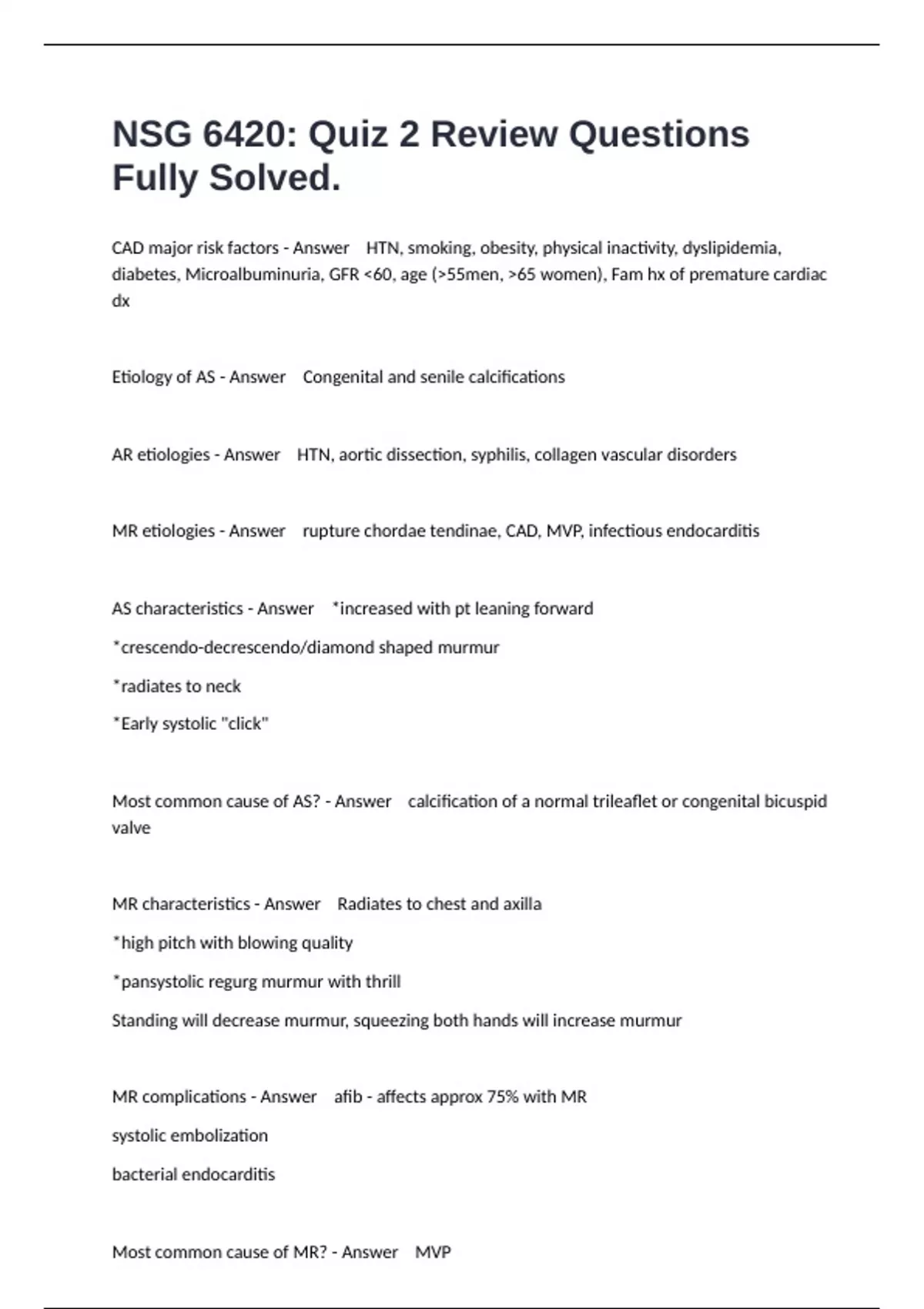 AR etiologies - Answer HTN, aortic dissection, syphilis, collagen vascular disorders