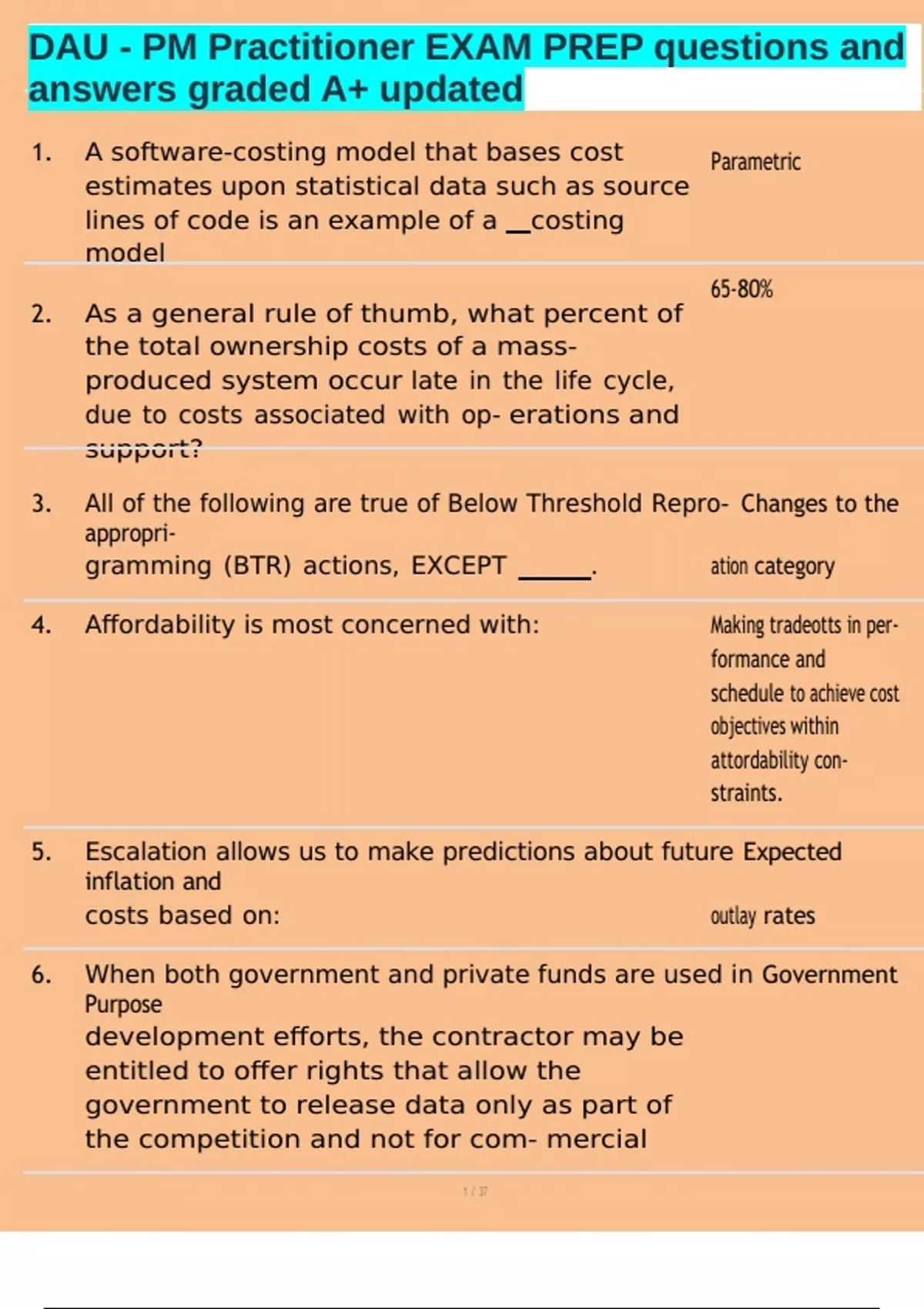 DAU - PM Practitioner EXAM PREP questions and answers graded A+ updated