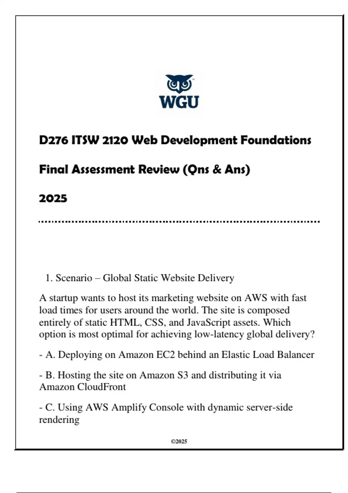 Correct ANS: B. Hosting the site on Amazon S3 and
