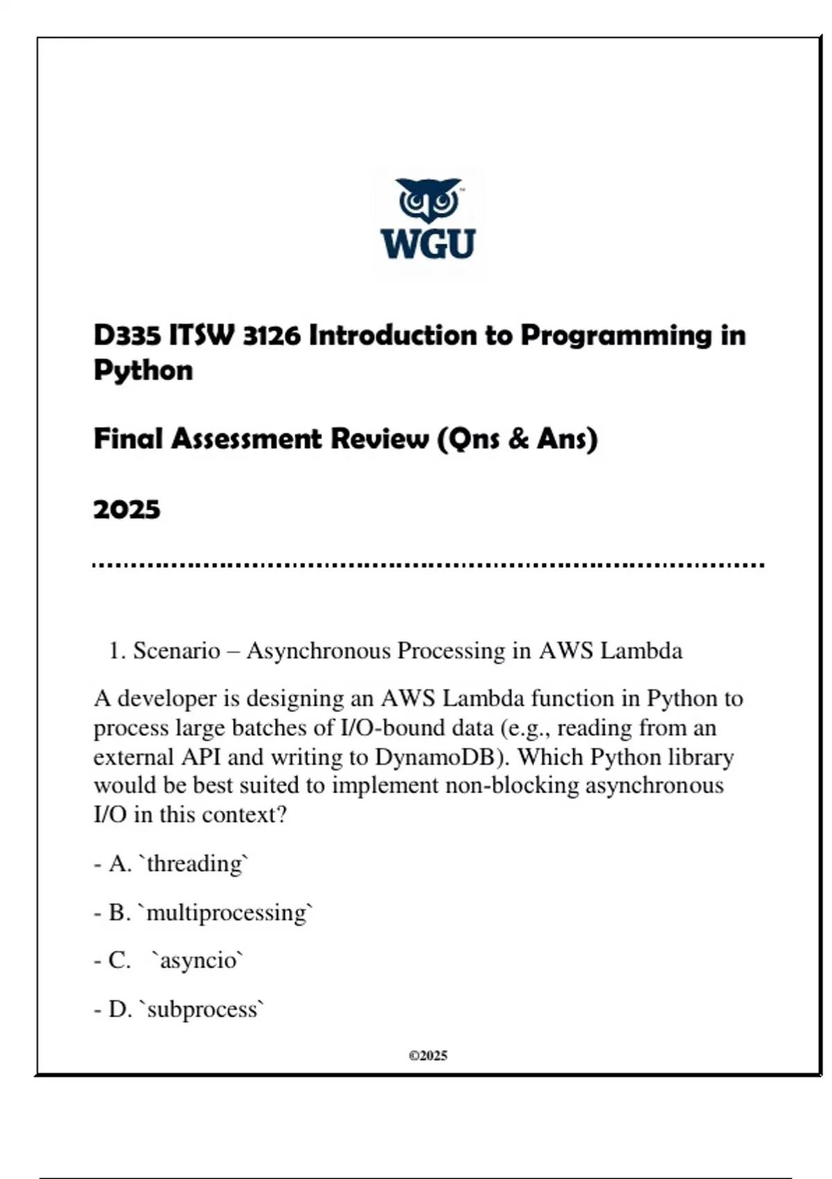 , Correct ANS: C. `asyncio`