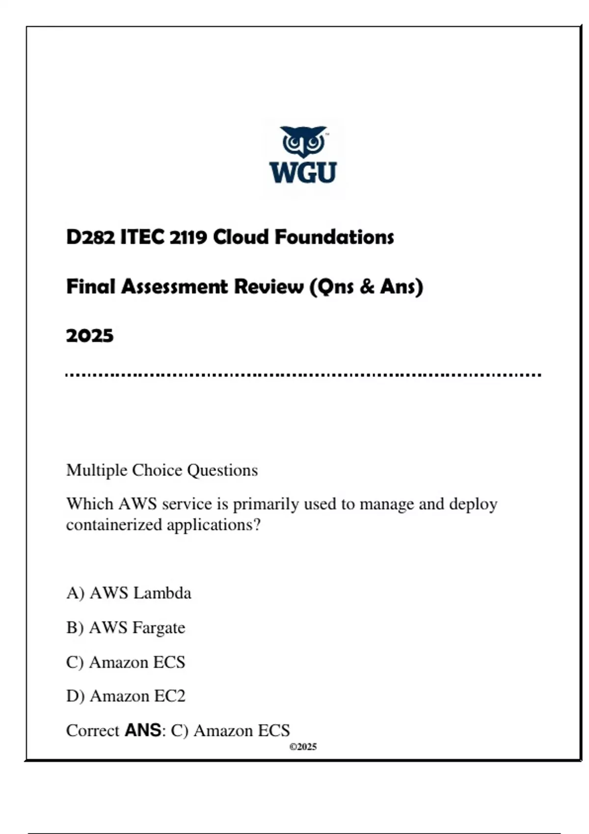 Correct ANS: C) Amazon ECS