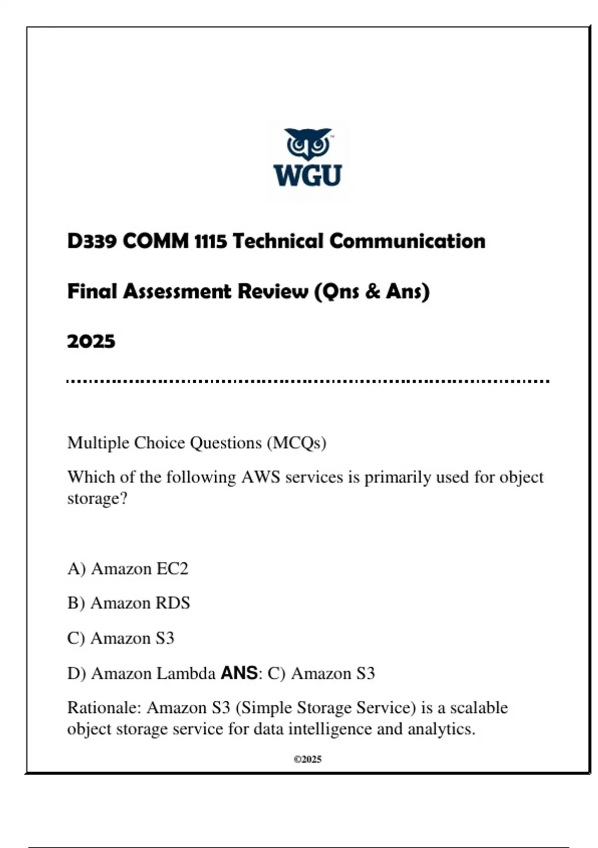 D) Amazon Lambda ANS: C) Amazon S3