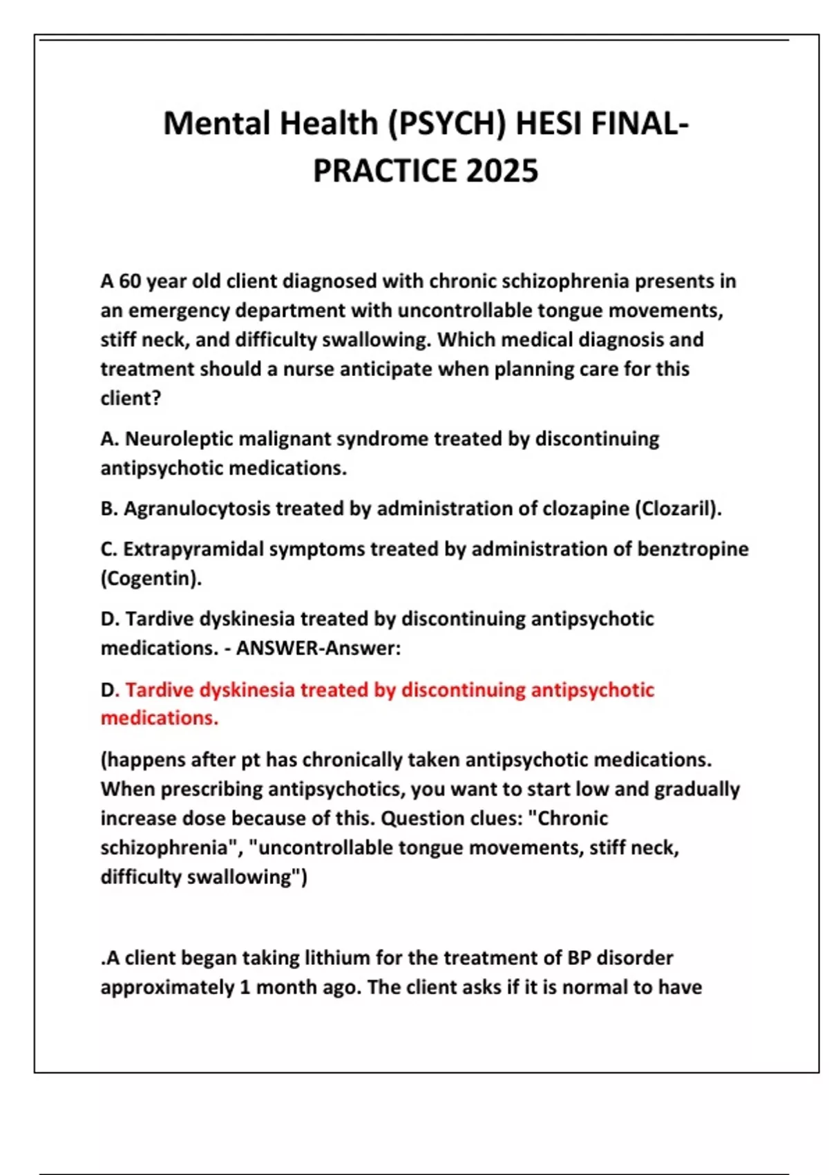 A 60 year old client diagnosed with chronic schizophrenia presents in
