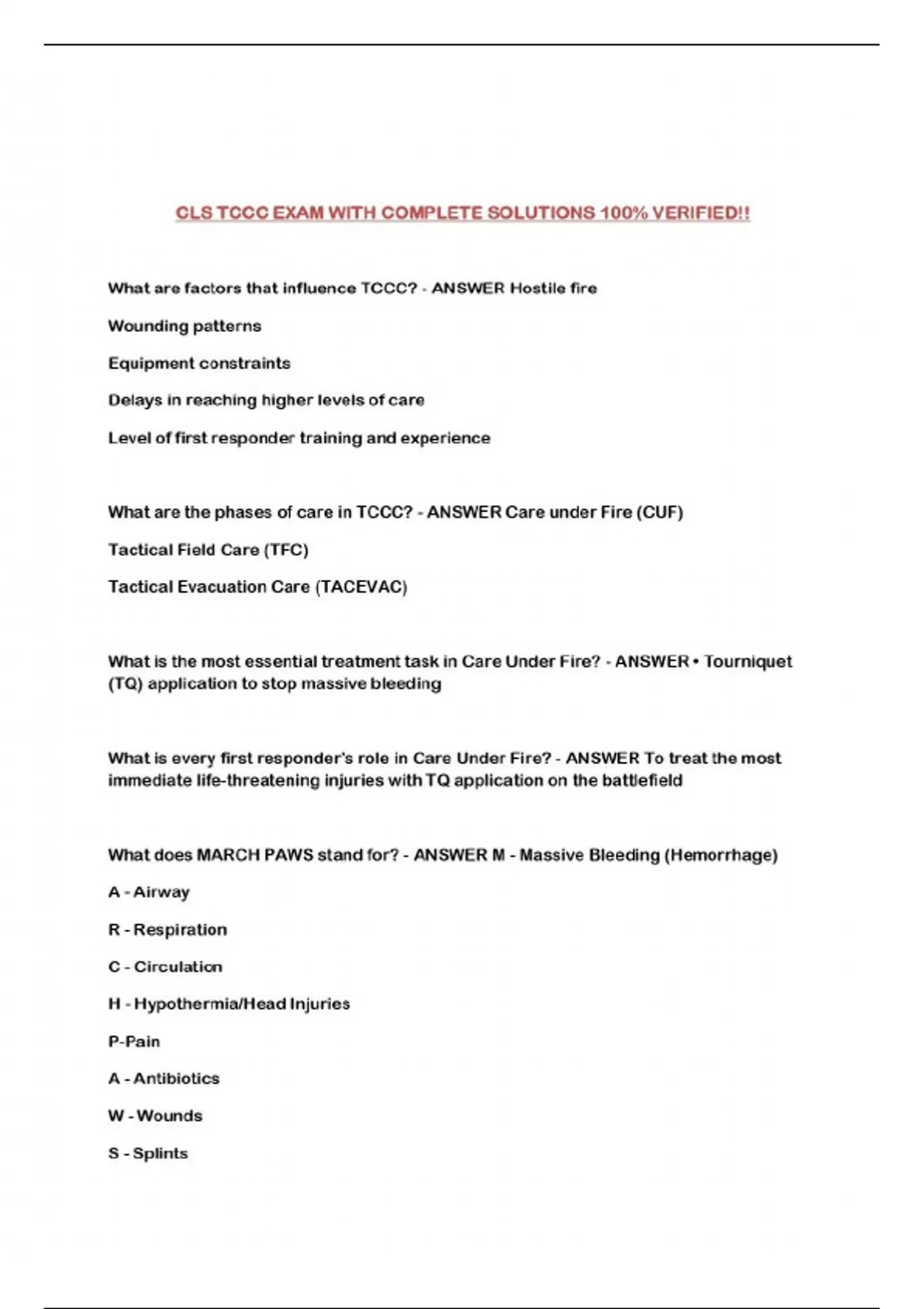 TCCC CLS PACKAGED EXAMS!!