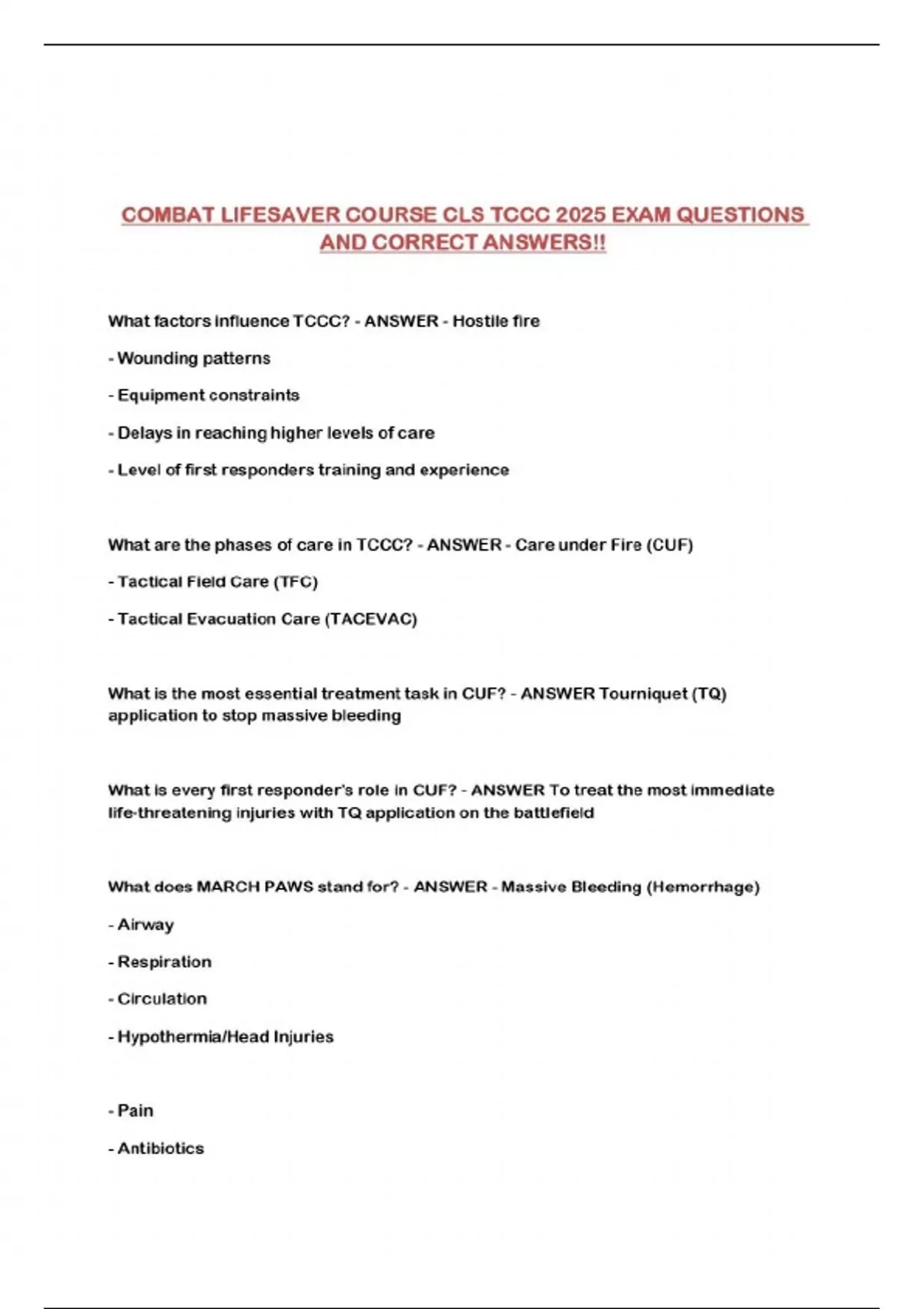 TCCC CLS PACKAGED EXAMS!!