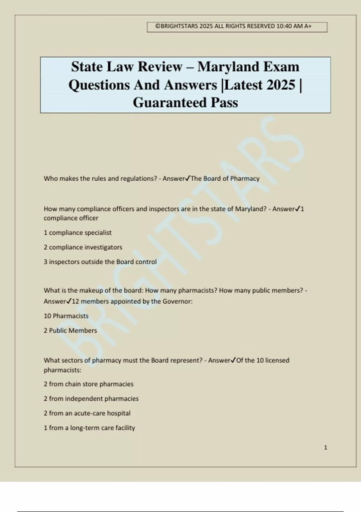 State Law Review – Maryland Exam