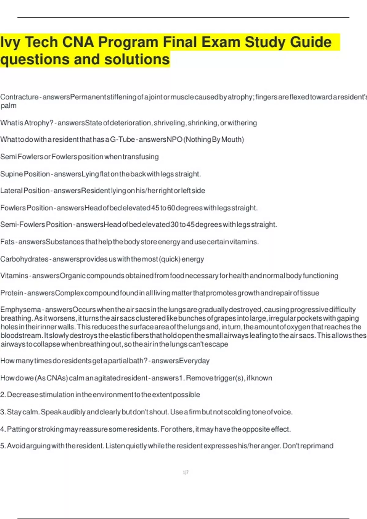 How do we (As CNAs) calm an agitated resident - answers1. Remove trigger(s), if known