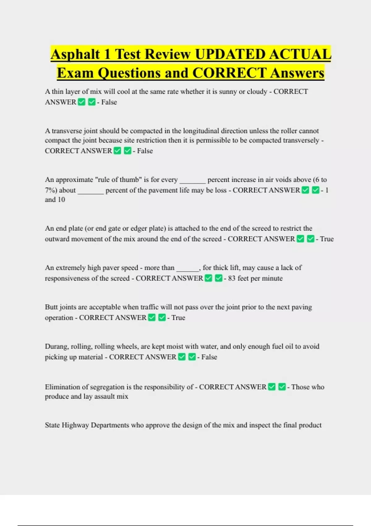 Asphalt 1 Test Review UPDATED ACTUAL Exam Questions and CORRECT Answers