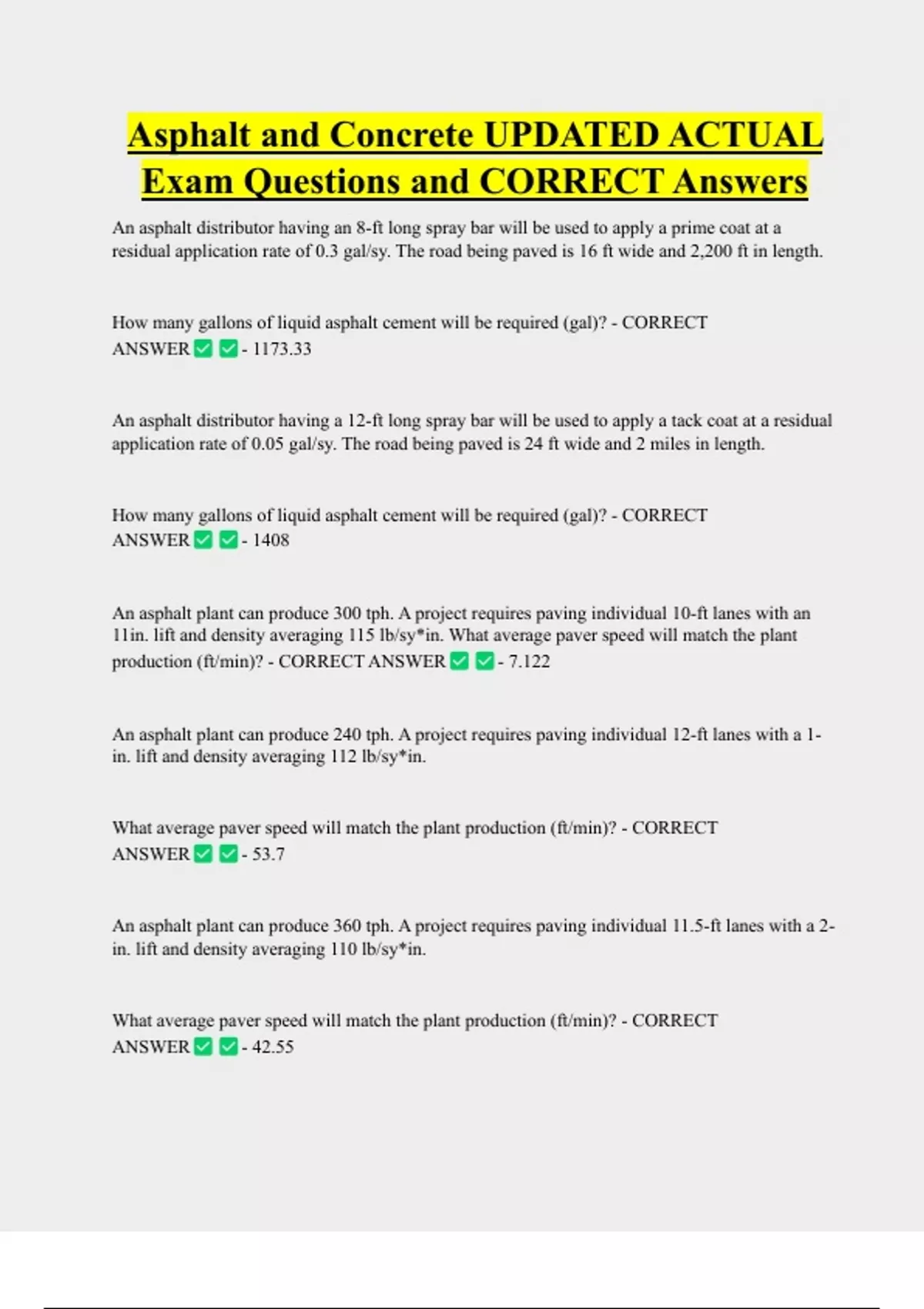 paving. - CORRECT ANSWER - 845 gallons