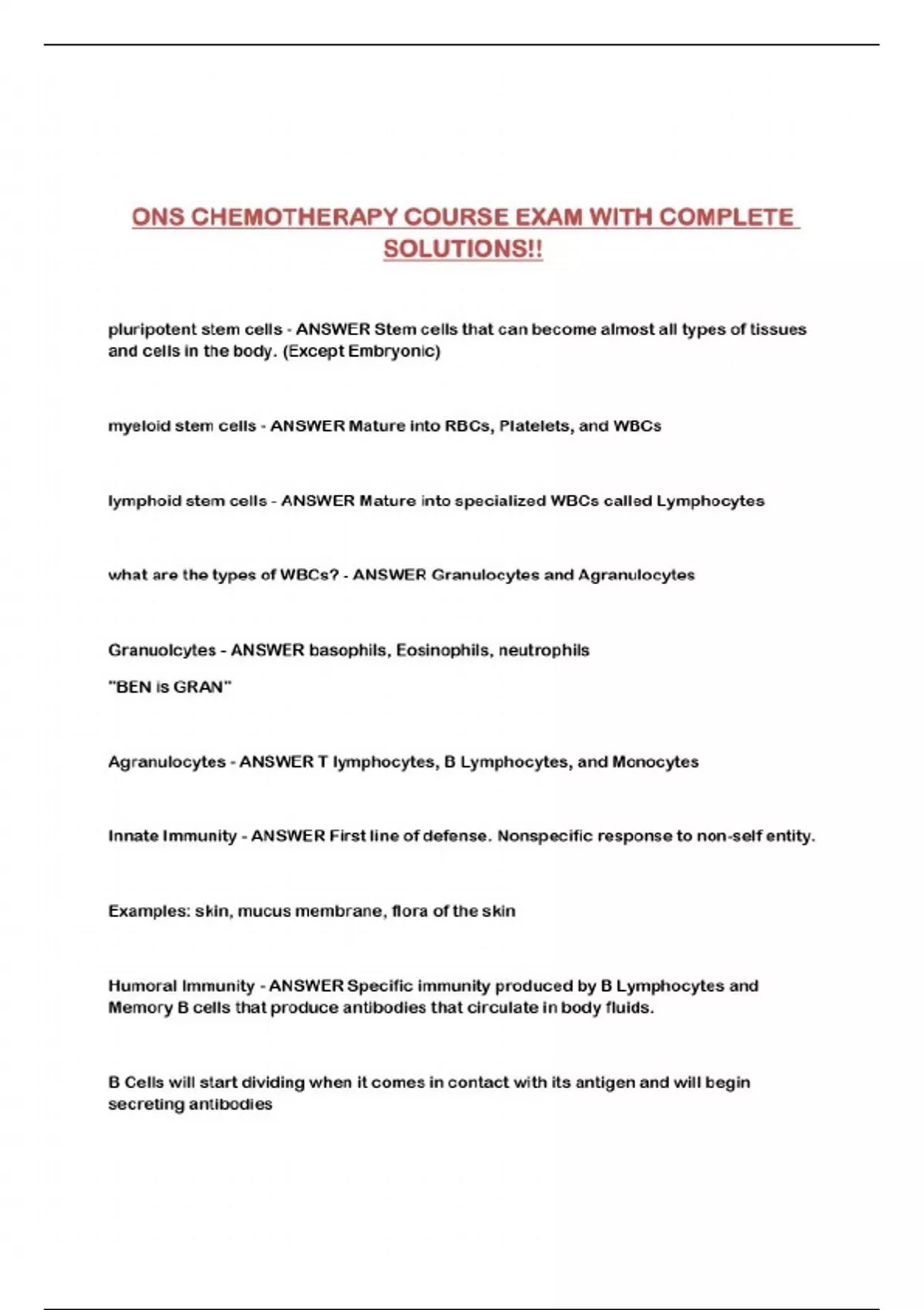 ONS CHEMOTHERAPY COURSE EXAM WITH COMPLETE SOLUTIONS!!...