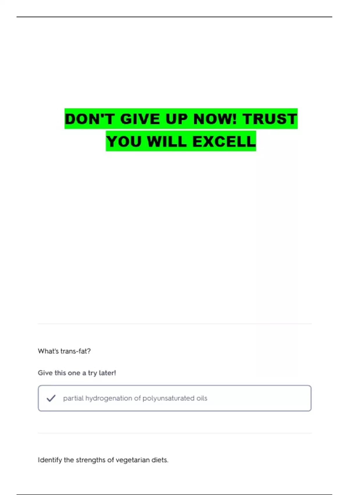 Identify the strengths of vegetarian diets.