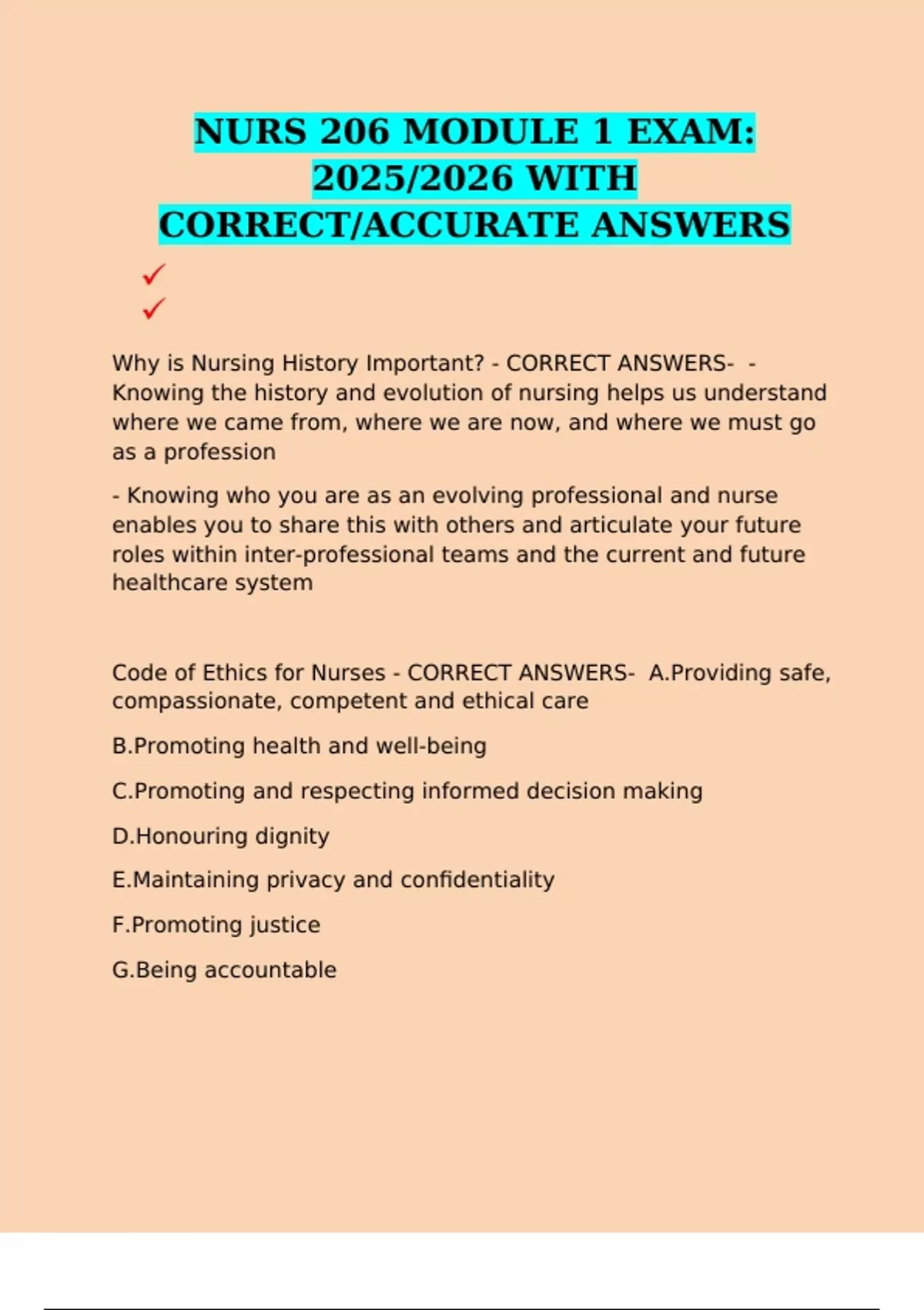 NURS 206 MODULE 1 EXAM: 2025/2026 WITH CORRECT/ACCURATE ANSWERS