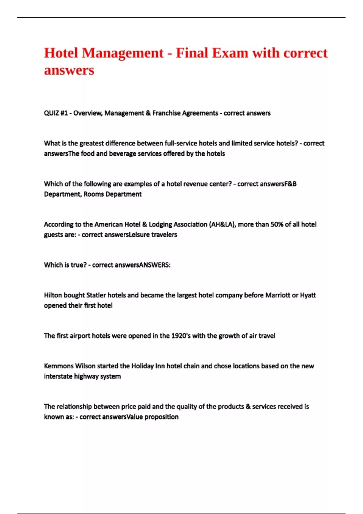 QUIZ #1 - Overview, Management & Franchise Agreements - correct answers