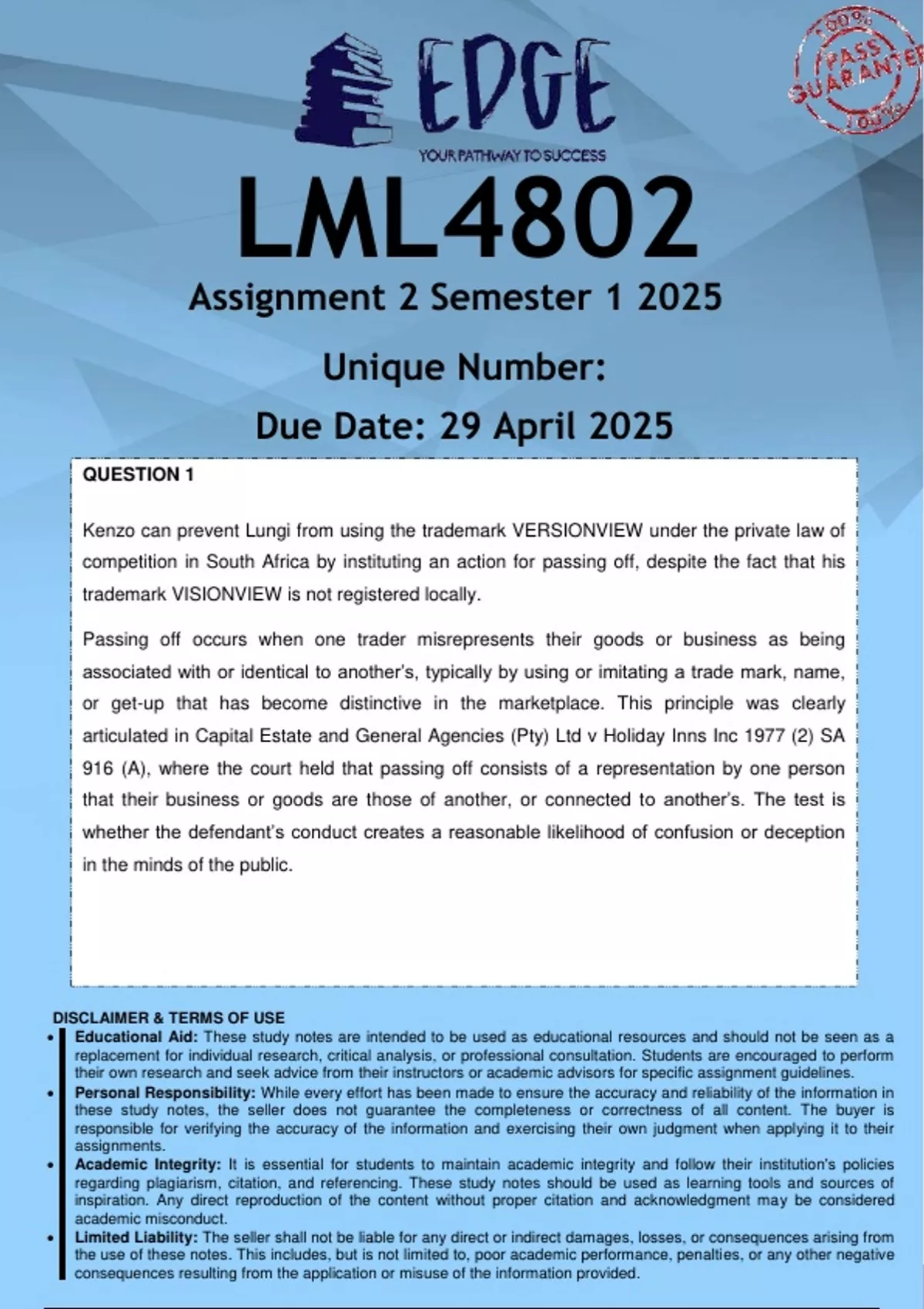these study notes, the seller does not guarantee the completeness or correctness of all content. The buyer is