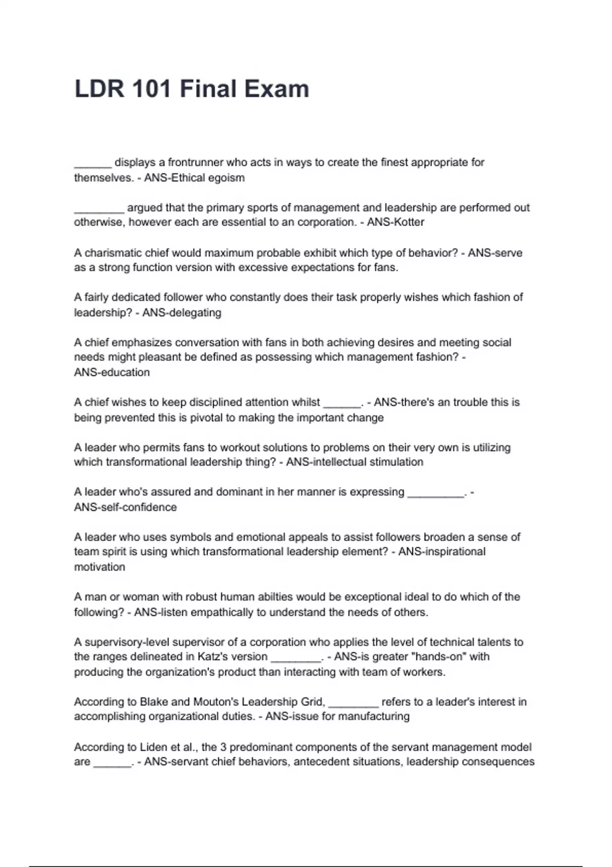 LDR 101 Final Exam NEWEST 2025/2026 ACTUAL EXAM COMPLETE QUESTIONS AND CORRECT DETAILED ANSWERS (VERIFIED ANSWERS) |ALREADY GRADED A+||BRAND NEW!!