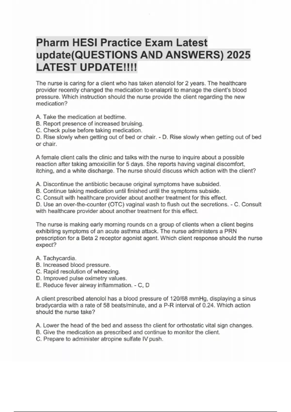 Pharm HESI Practice Exam Latest update(QUESTIONS AND ANSWERS) 2025 LATEST UPDATE!!! Pharm HESI Practice Exam Latest update(QUESTIONS AND ANSWERS) 2025 LATEST UPDATE!!!