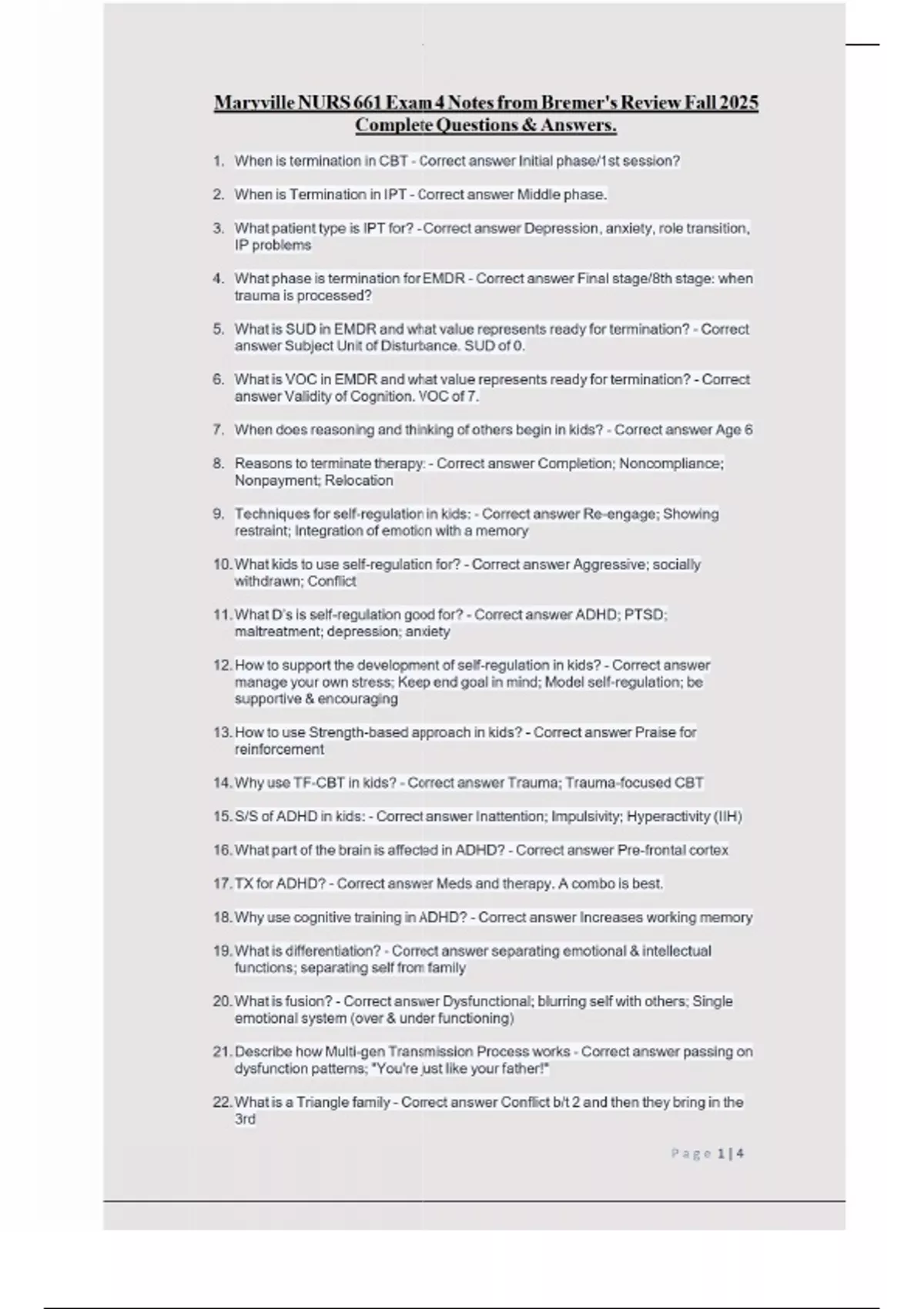 Maryville NURS 661 Exam 4 Notes from Bremer's Review Fall 2025 Complete Questions & Answers.