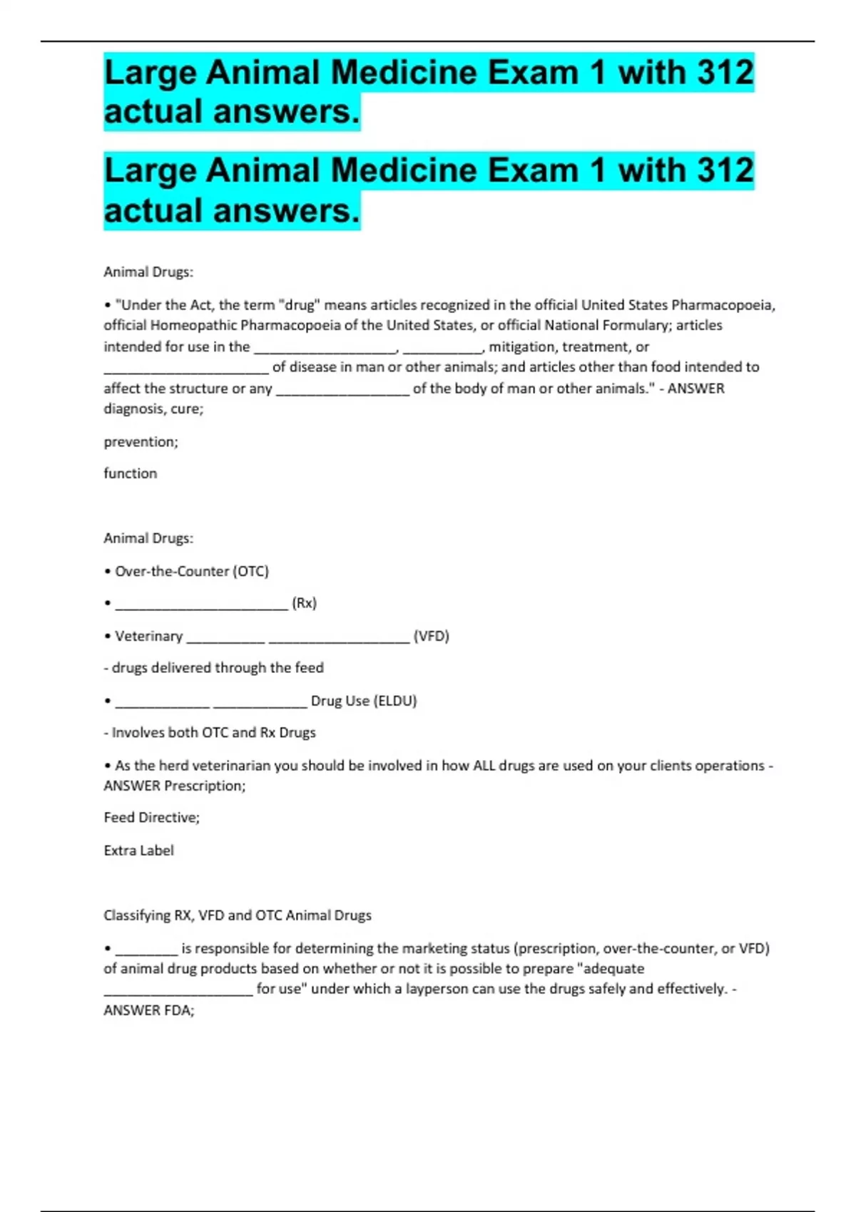 Large Animal Medicine Exam 1 with 312