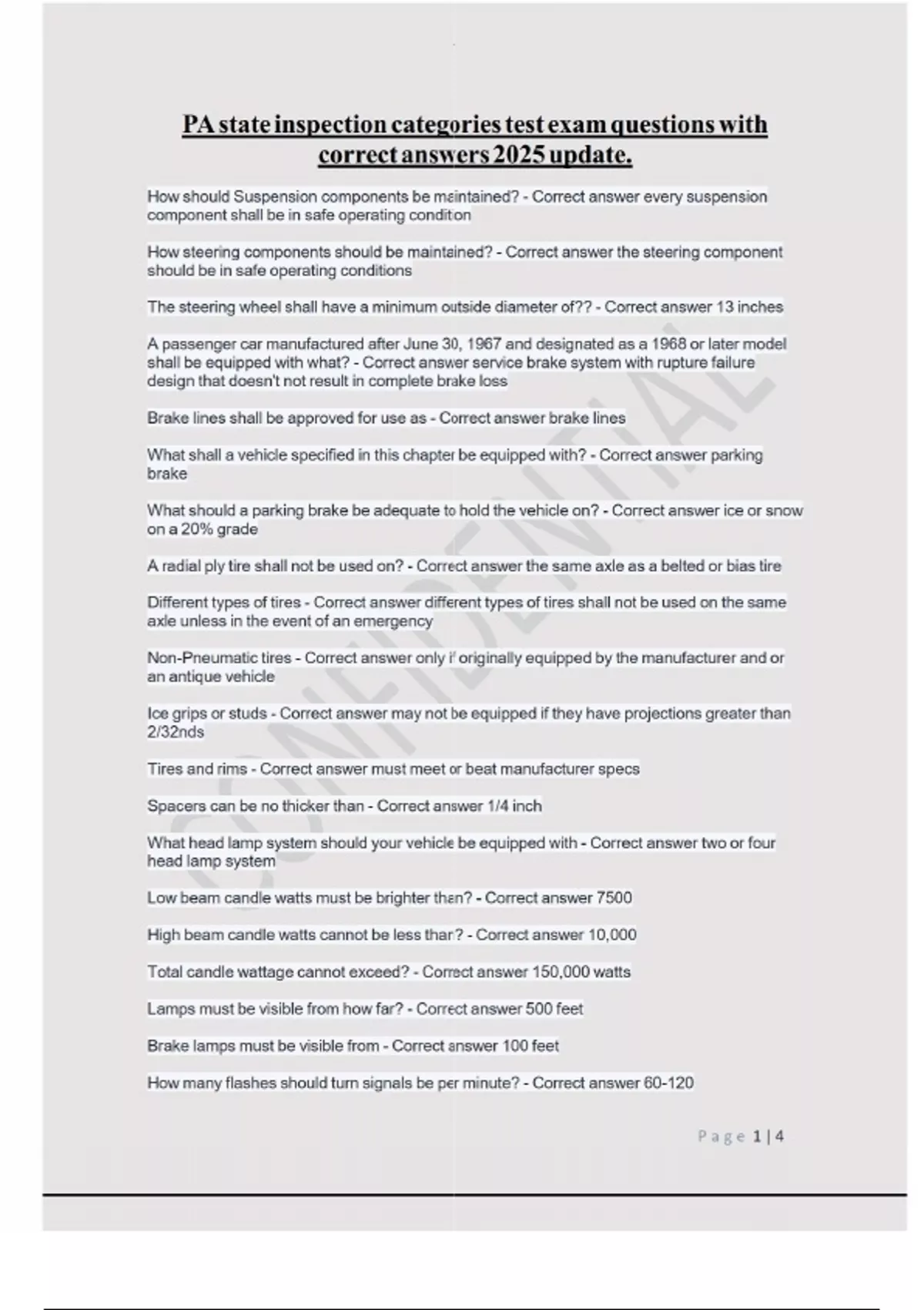 PA state inspection categories test exam questions with correct answers 2025 update.