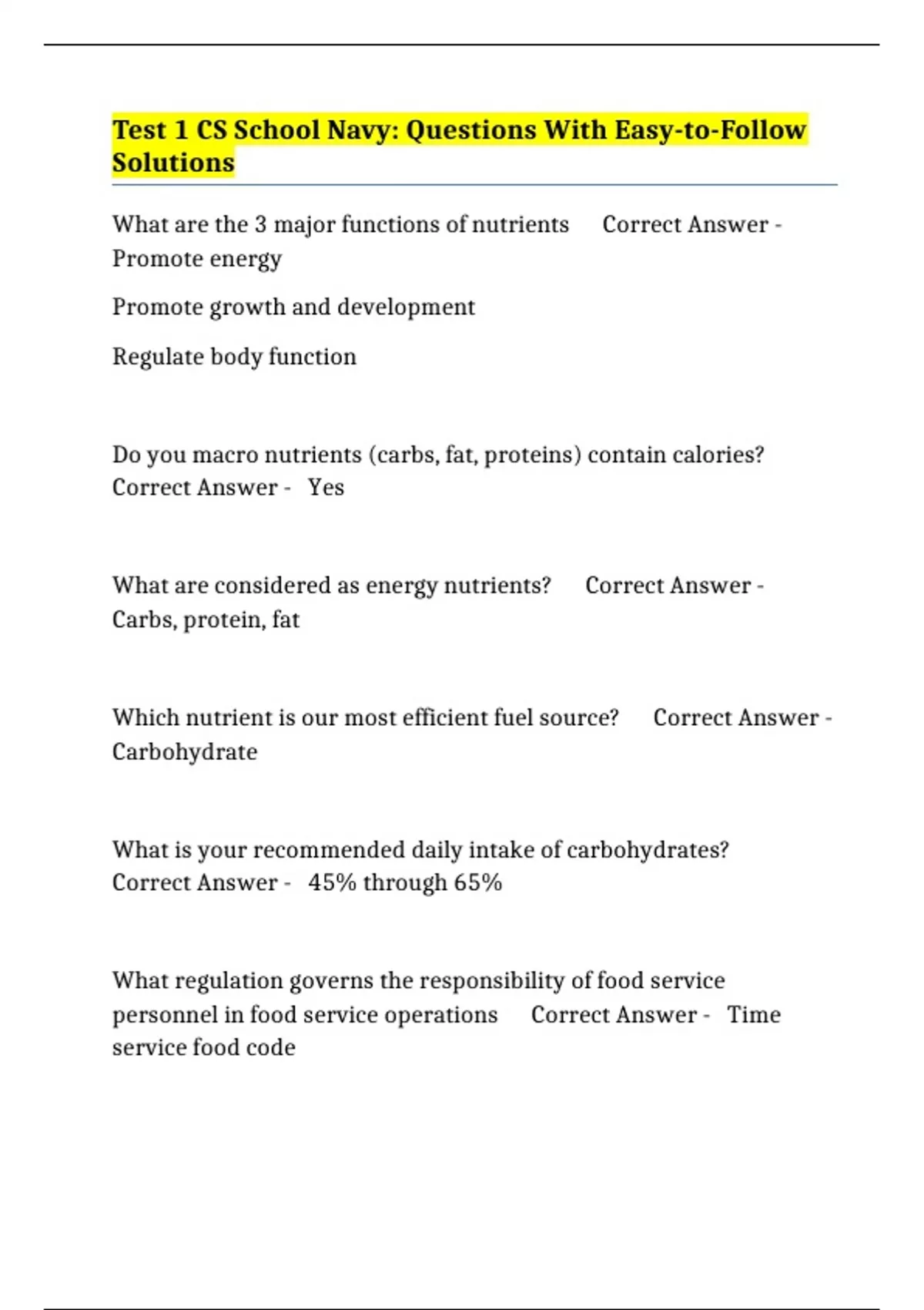 Which nutrient is our most efficient fuel source? Correct Answer -