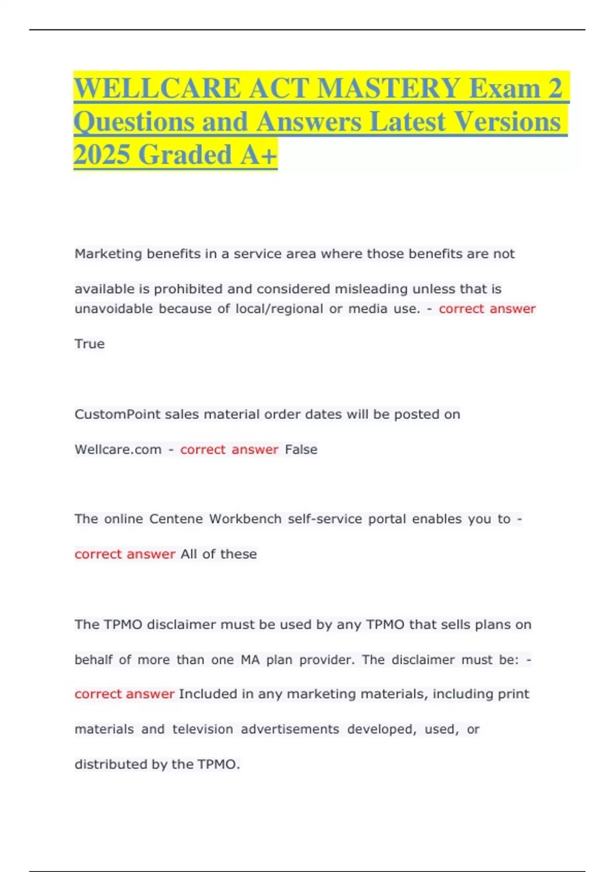 WELLCARE ACT MASTERY Exam 2