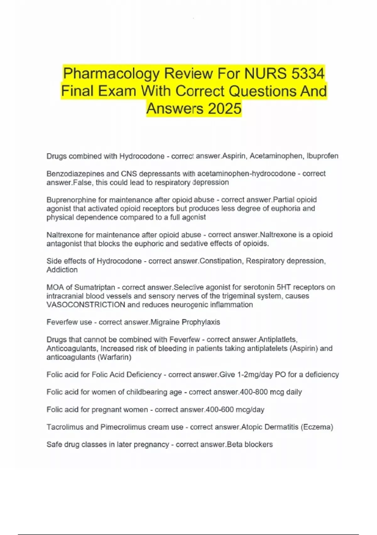 Pharmacology Review For NURS 5334 Final Exam With Correct Questions And Answers 2025