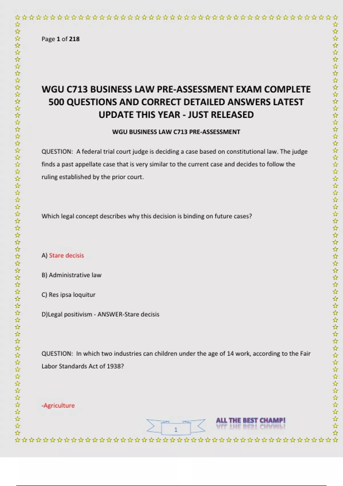 WGU C713 BUSINESS LAW PRE-ASSESSMENT EXAM COMPLETE