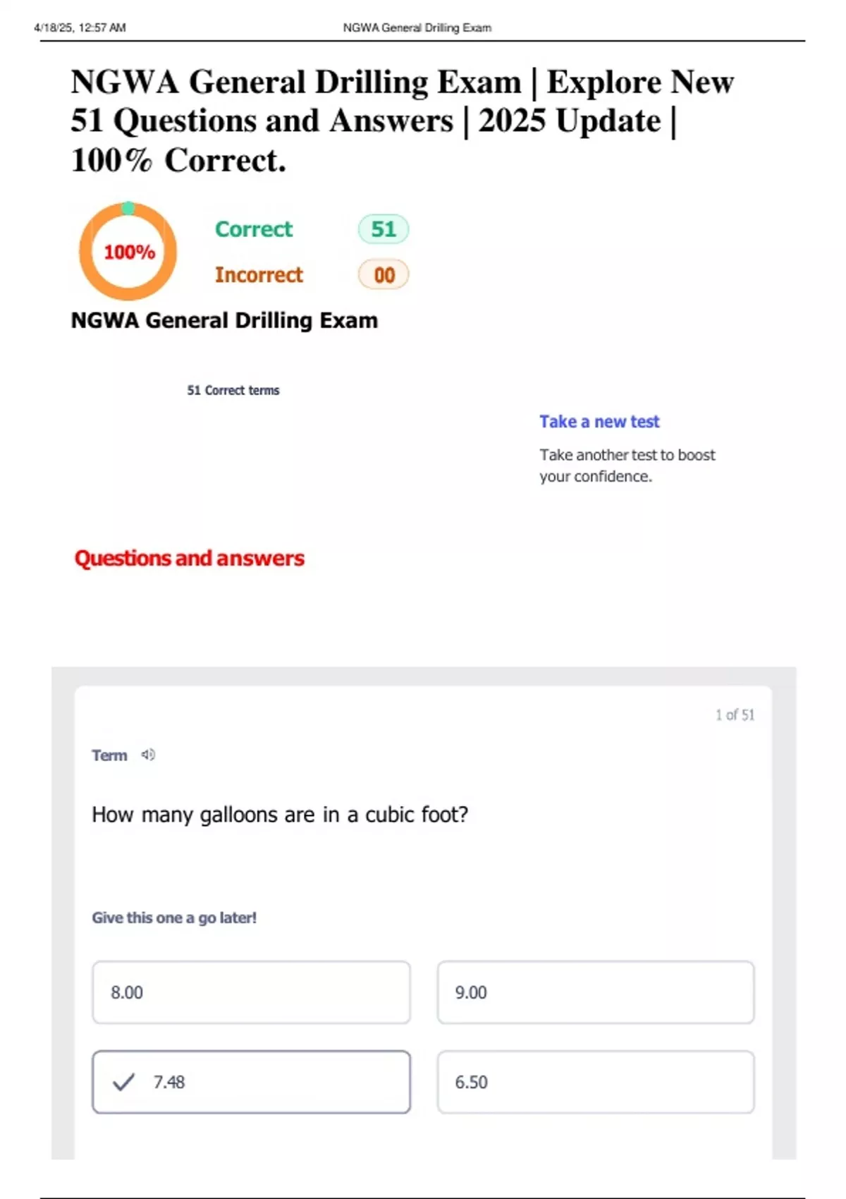 , 4/18/25, 12:57 AM NGWA General Drilling Exam