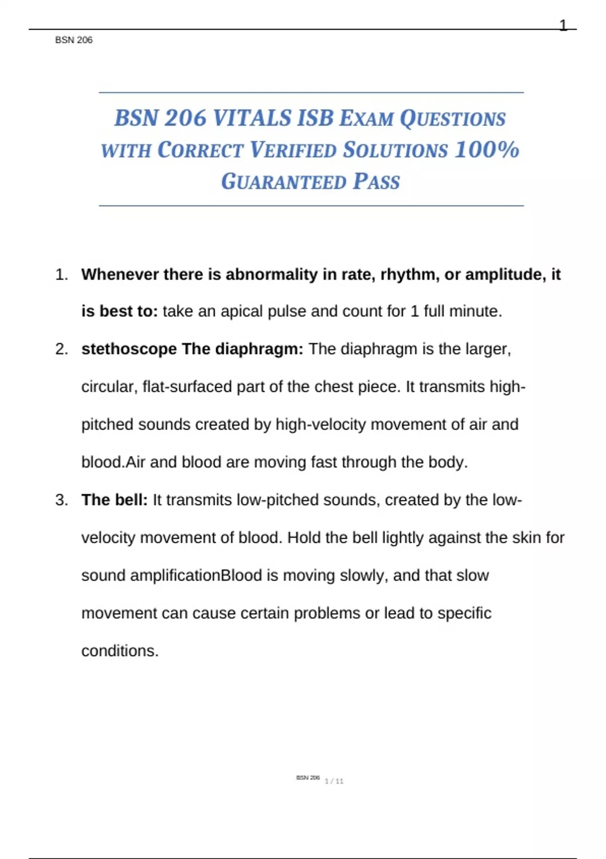 BSN 206 VITALS ISB EXAM QUESTIONS