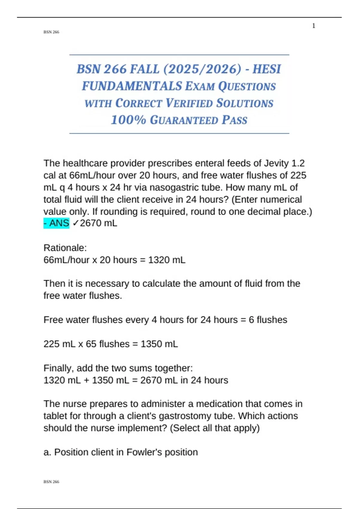 BSN 266 FALL (2025/2026) - HESI
