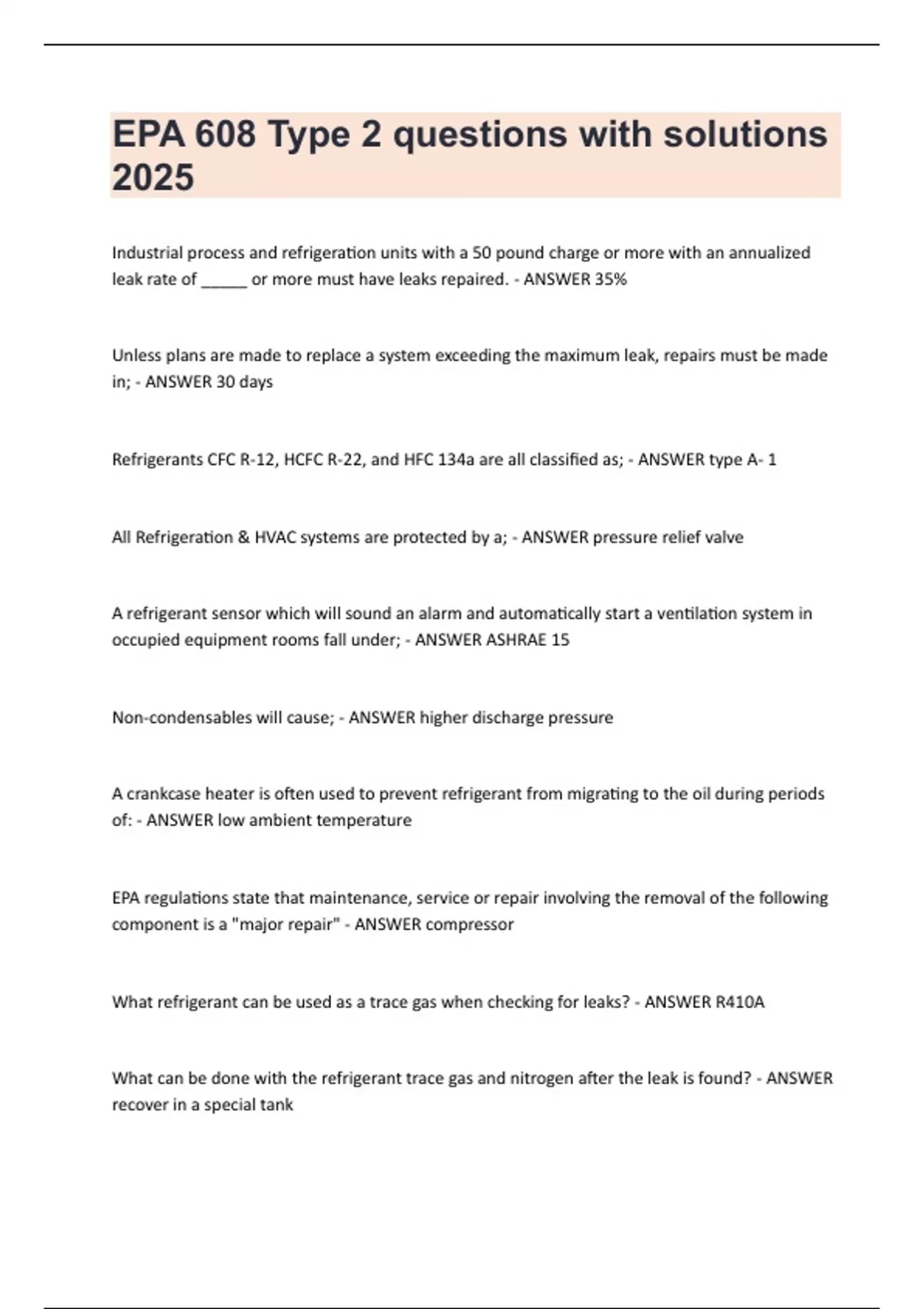 leak rate of _____ or more must have leaks repaired. - ANSWER 35%