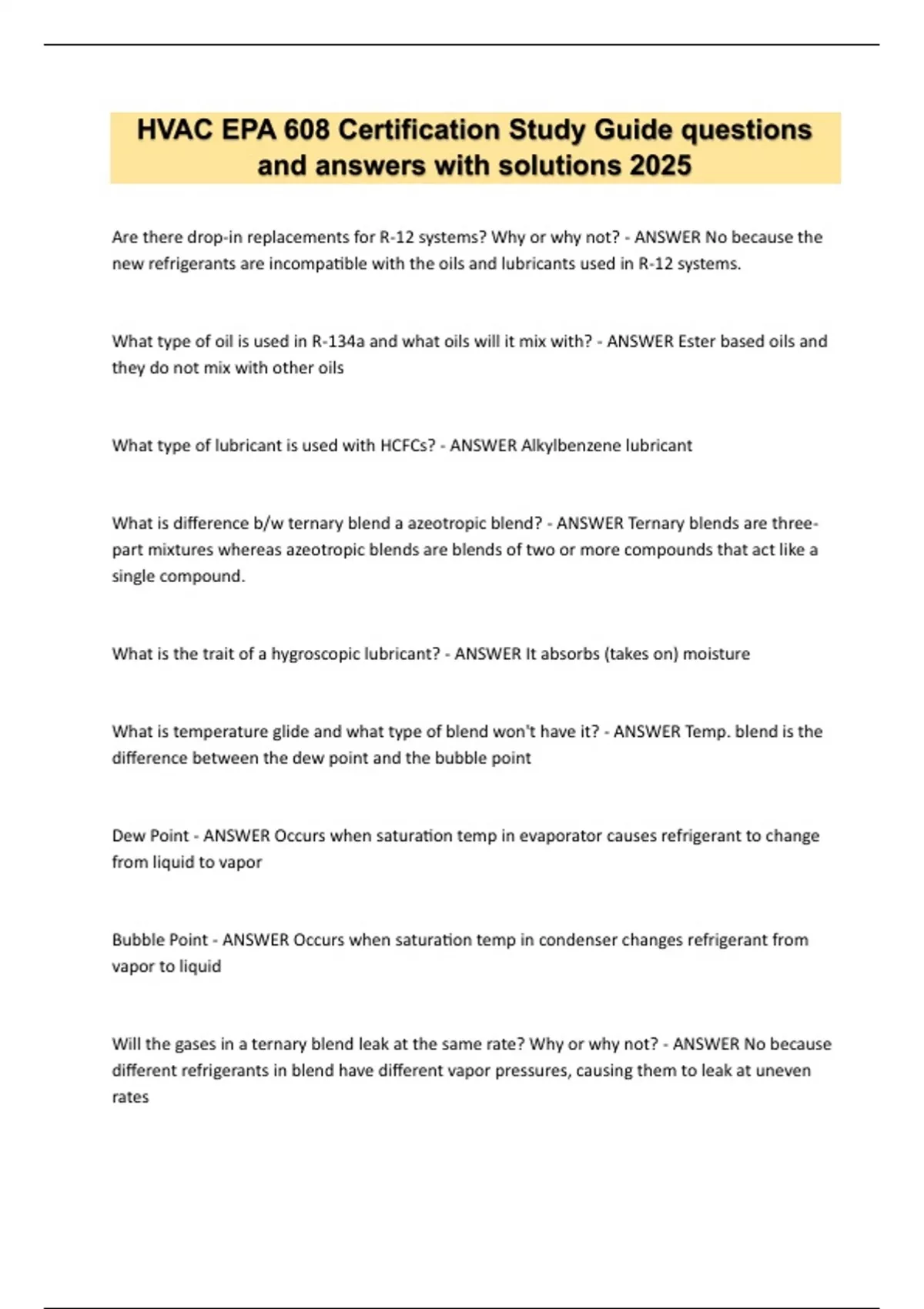 HVAC EPA 608 Certification Study Guide questions and answers with solutions 2025.