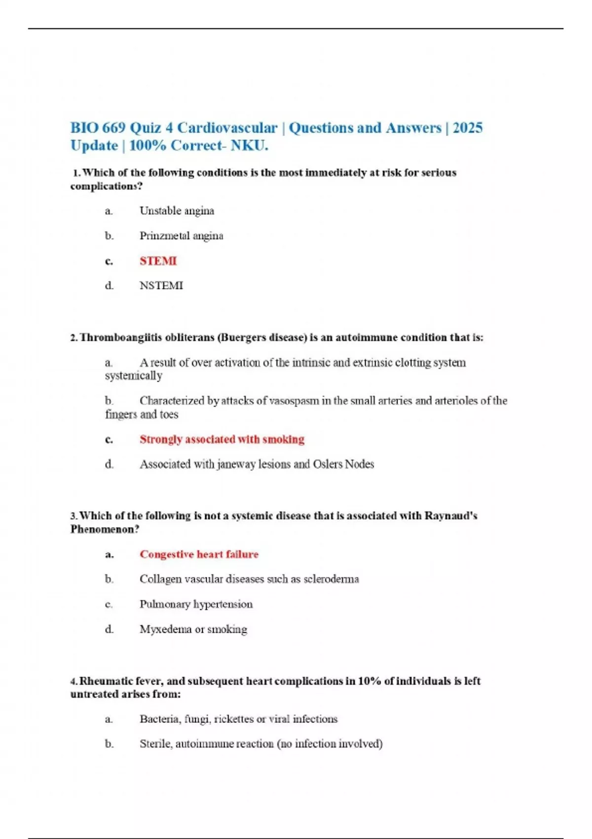 BIO 669 Quiz 4 Cardiovascular | Questions and Answers | 2025 Update | 100% Correct- NKU.