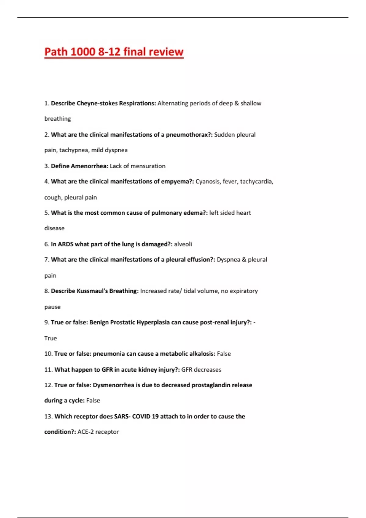 8. Describe Kussmaul's Breathing: Increased rate/ tidal volume, no expiratory