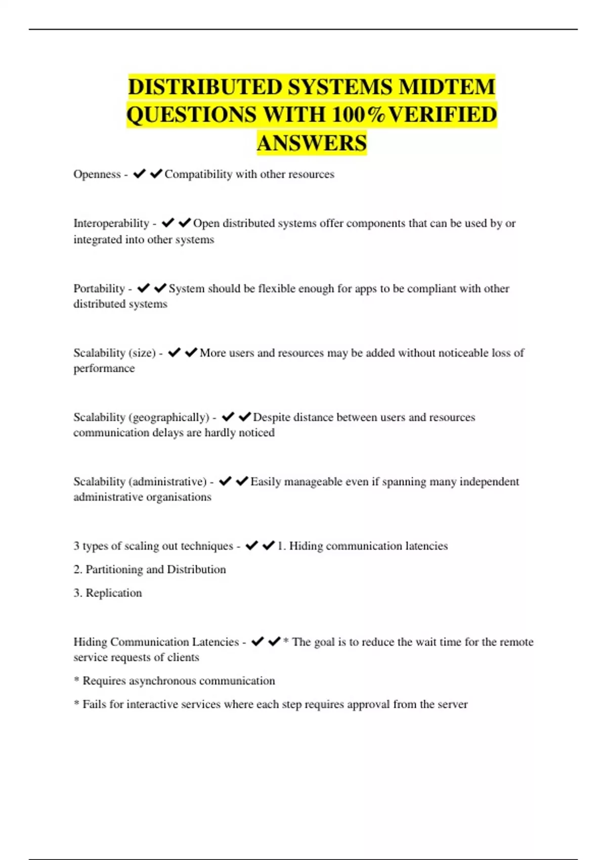 DISTRIBUTED SYSTEMS MIDTEM QUESTIONS WITH 100%VERIFIED ANSWERS